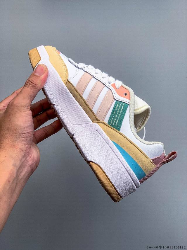 Adidas Originals Post Up Low-Top Versatile Casual Sneakers! This classic Adidas shoe continues its basketball court DNA while incorporating a modern style. It features a serrated three stripes and a suede toe cap, a comfortable midsole, and showcases its traditional essence. Made of leather, it has a mid-top design, padded ankle support, and a modern sole for comfortable wear. The design aims to create a metallic cool look that is both stylish and fashionable. 5313H22