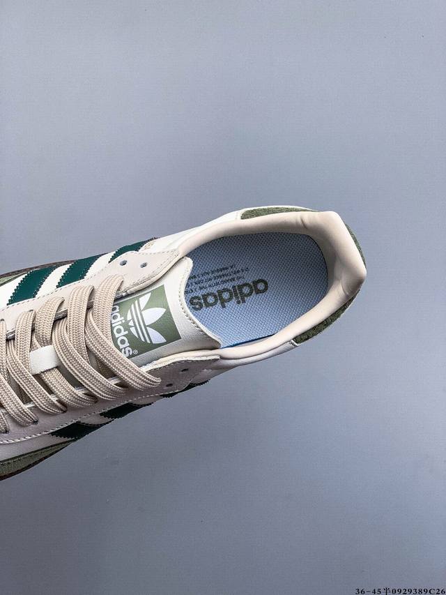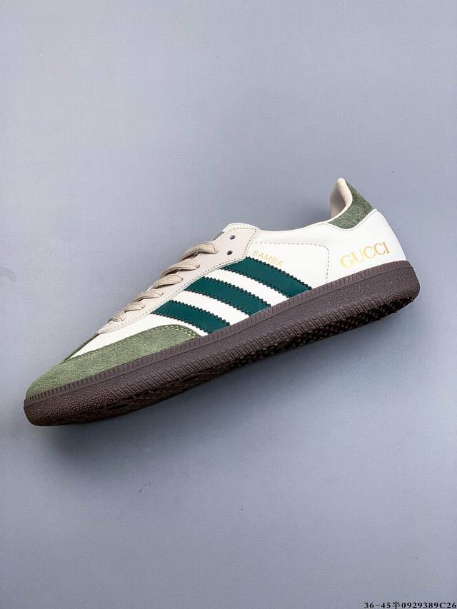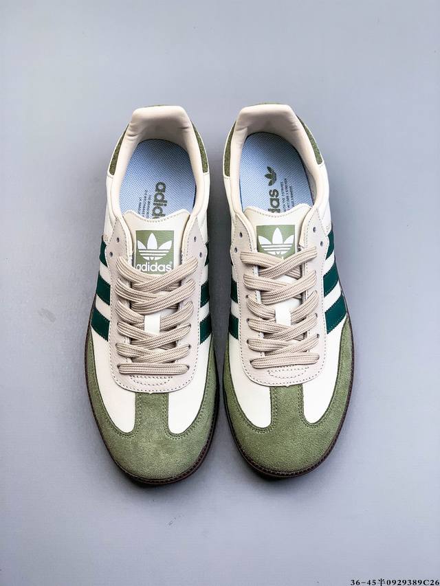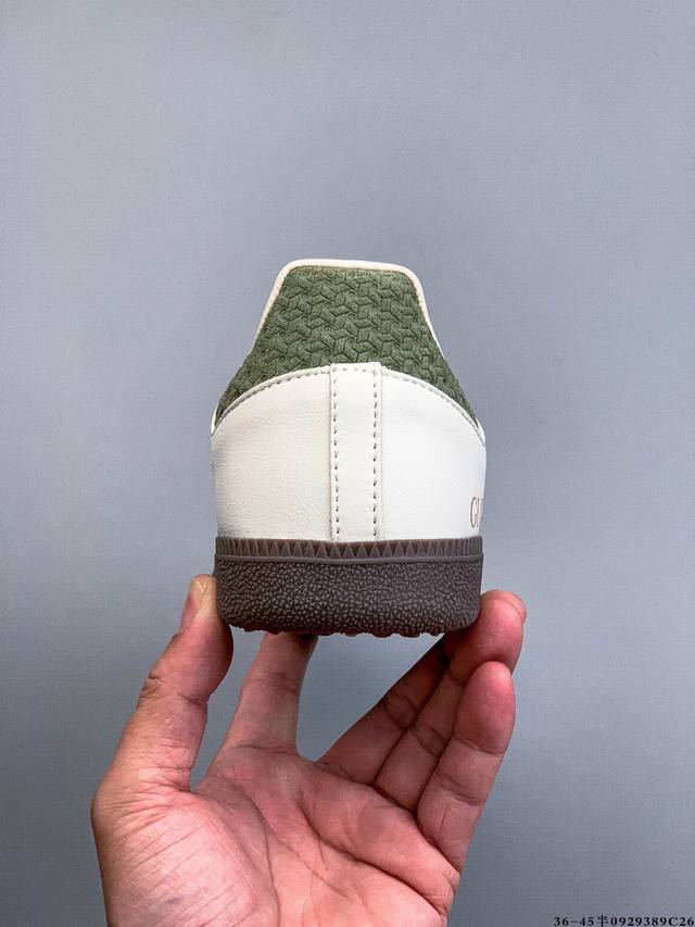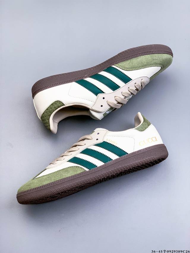 Adidas Originals Samba German Training Shoes, non-slip and wear-resistant low-top sneakers for both men and women. The simple and elegant design gives the Notitle x Adidas Originals Samba a casual and fashionable look. Lightweight and comfortable, with flexible movement, it's perfect for everyday wear. #Exclusive original mold creation using original box and sole materials. #Original woven label with high precision. #Developed using original last and cardboard, it matches the original by over 98%. #Exclusive heel padding with correct heel curvature. #Original insole with adhesive backing and heel embroidery stitch count consistent with the original. #Original leather and original stitching for unrivaled quality. #Leather is cleanly cut, free of burrs, and features impeccable cleanliness and detail. 0929389C26