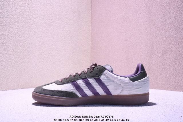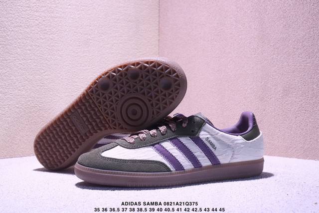 Adidas Originals Samba Og Shoes Classic sneakers, white sneakers, T-toe shoes for women, a stylish classic shoe that embodies a casual, modern style. Born on the football fields of the 1950s, it later made its way to the streets and catwalks. The Adidas Samba is a style icon in its own right. This classic Samba Og shoe features a soft leather upper and a rubber outsole for comfort and a casual look. The serrated three stripes and distinctive T-toe pay tribute to the Samba's traditional design. Understated gold foil details add a touch of style. Staying true to our roots, our passion never fades. Regular fit, lace-up design, leather upper, textile lining, and rubber outsole.