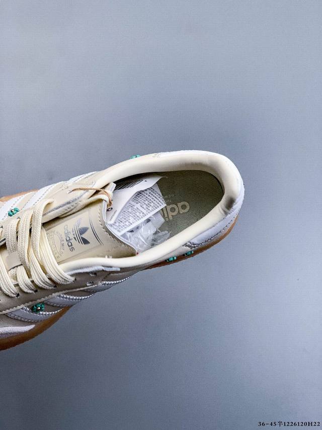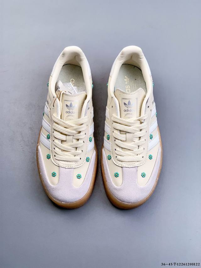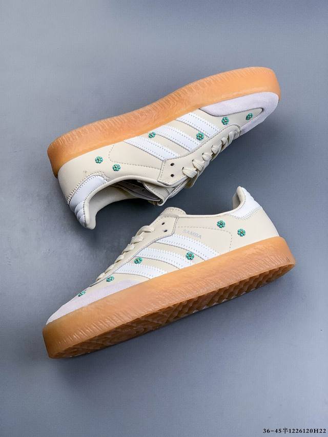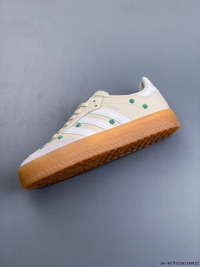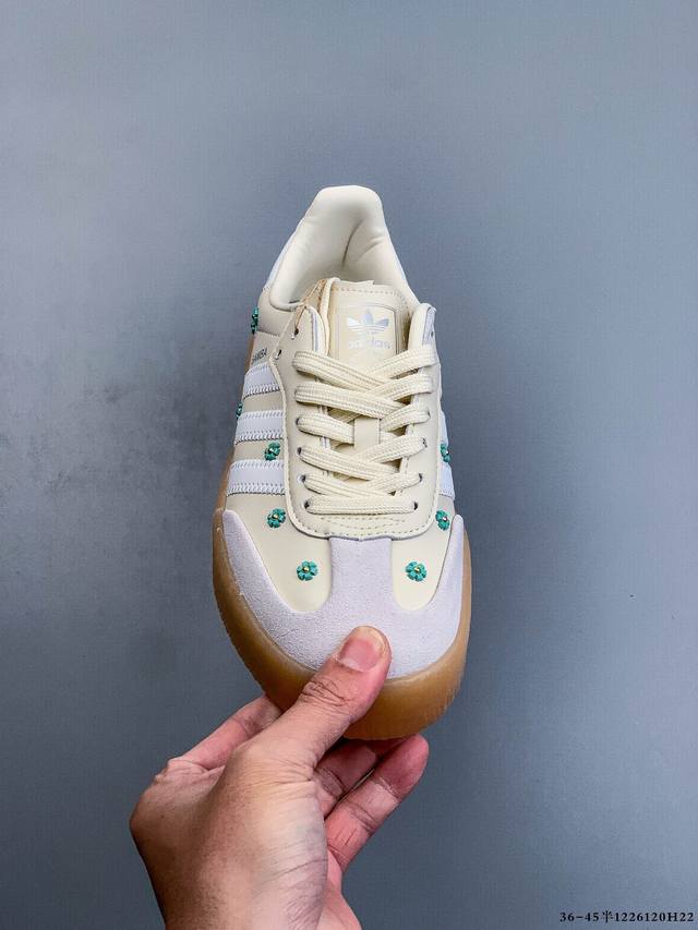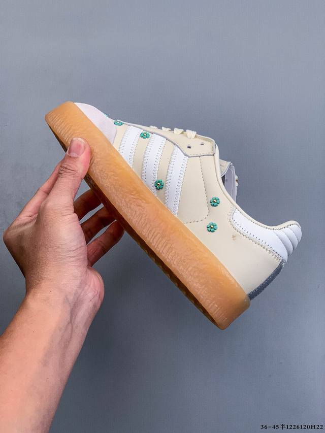 Adidas Originals Sambae W Versatile Retro Samba Sneakers Ddd The Adidas Sambae W features a thick sole made of gum rubber, easily adding height while providing a comfortable experience. The shoe incorporates contrasting stitching and a unique toe design, not only refreshing the overall modern style but also showcasing individuality and fashion sense. Ddd 1226120H22 DDD