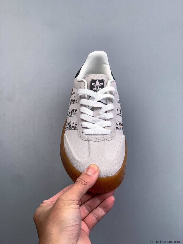 Adidas Originals Sambae W Versatile Retro Samba Sneakers DDD The Adidas Sambae W features a thick sole made of gum rubber, easily adding height while providing a comfortable experience. The shoe incorporates contrasting stitching and a unique toe design, not only refreshing the overall modern style but also showcasing individuality and fashion sense. DDD 1118284H22 DDD