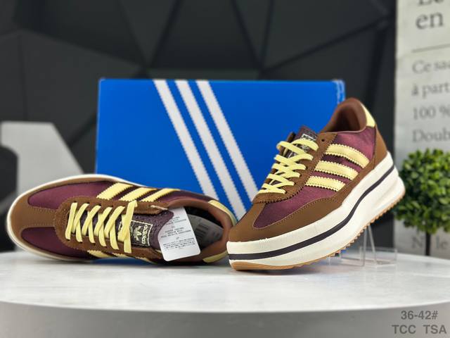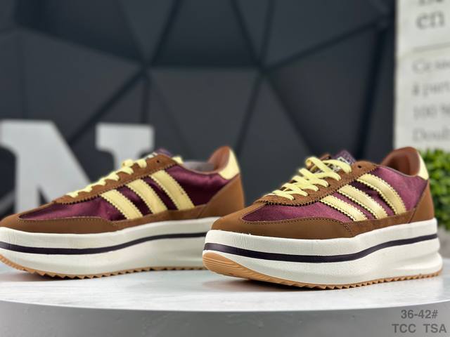 Adidas Originals SL 72 Stack Shoes, Adidas Striped Color Block Platform Low-Top Casual Shoes . Original factory design, suede and fabric upper, clean leather cutting with no rough edges, 4M invisible platform sole**, perfect shoe shape and details. Product Code: Jq6420. Sizes: 36, 36.5, 37, 38, 38.5, 39, 40, 40.5, 41, 42. (Tcc, Tsa)