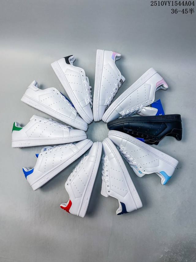 Adidas Originals Stan Smith All-Black Retro Fashion Comfortable Sports Casual Sneakers. Developed using the original last and cardboard, made entirely of top-grain leather, distinguishing it from ordinary versions on the market. Perforated sides, two-tone leather heel, and rubber outsole provide a solid base. A classic retro style, the perfect choice for ever-classic white sneakers. Sizes: 36 36 37 38 38 39 40 40 41 42 42 43 44 45. Product Code: Fx5502. Code: 10Vy1544A04.