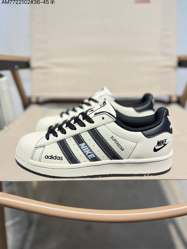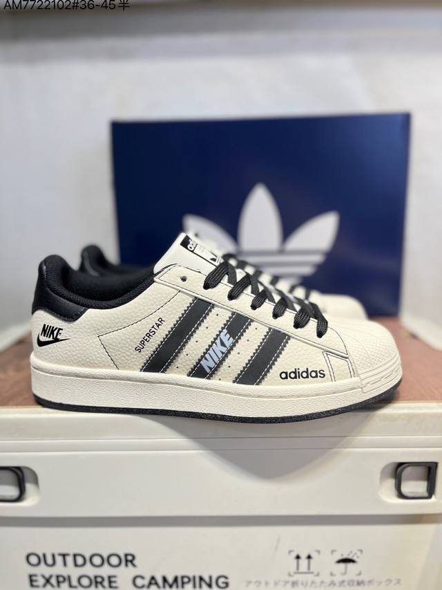 Adidas Originals Superstar classic colorway, classic shell toe, official website synchronized real shot, first release channel authentic order, showcasing the highest level of craftsmanship in the market, different from ordinary genuine label versions on the market, no problem to wear in stores. Ds5807 Am772 2# 36-45 half