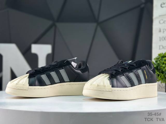 Adidas Originals Superstar II Shell Toe features a new top-grain leather patchwork design and a unique 3D printed logo on the heel. This is an authentic order from a reputable supplier, showcasing the highest level of craftsmanship in the market. Made entirely of imported top-grain leather, this shoe is distinct from ordinary authentic versions and can be easily passed off as a genuine product in a boutique. Product Code: Kj6976 Size: As shown in the picture.