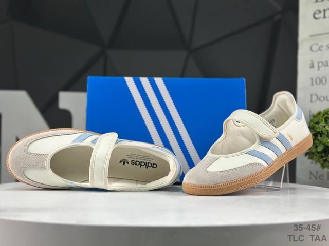Adidas Samba Janes Mary Jane White and Blue Sneakers, Slip-on Sports Shoes DDD Item Number: Jr7339 DDD Size: As shown in the picture Tlc Taa DDD