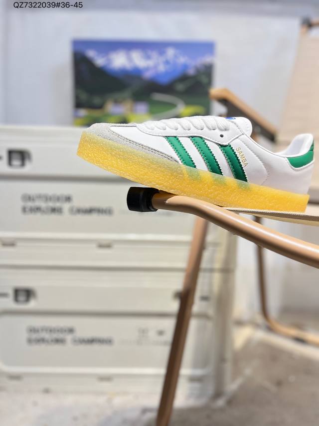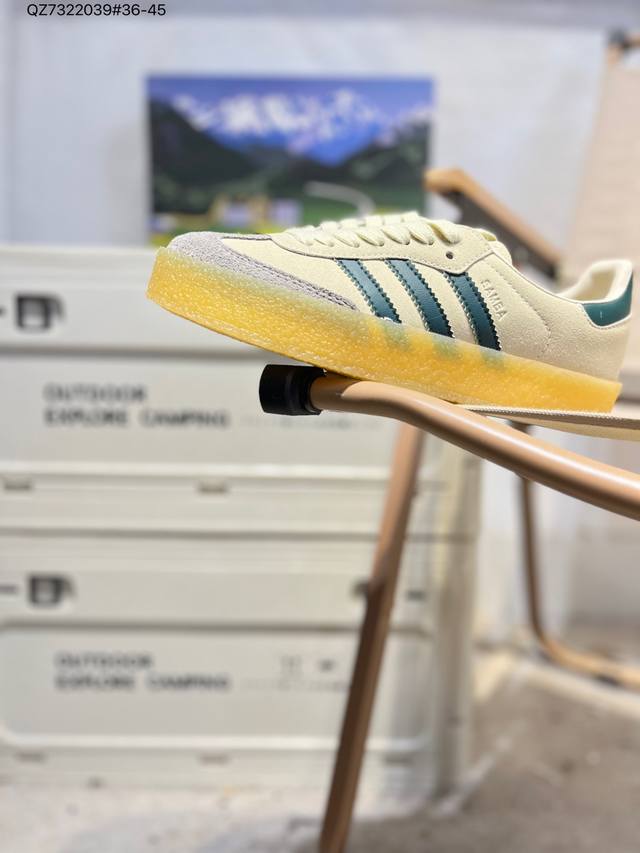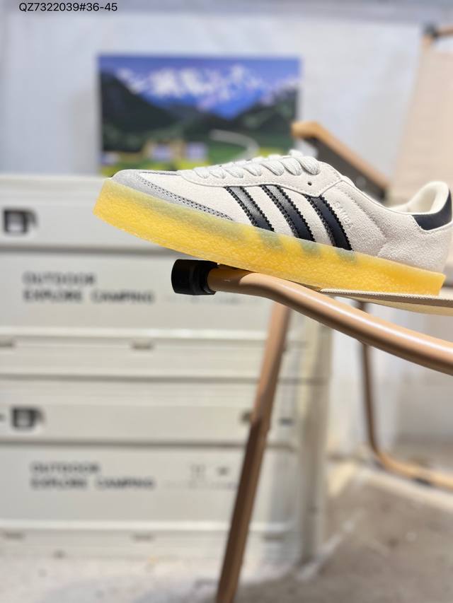 Adidas Samba Kith Clarks Originals Retro Casual Non-Slip Durable Low-Top Sneakers. The shoes feature a soft suede and durable leather lining integrated into a rubber outsole with a semi-transparent effect. 3-Trips and color lettering complete the original look. Sizes: Ie4032 Qz7322039# 36-45