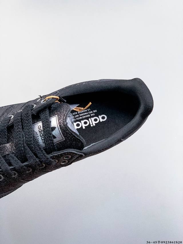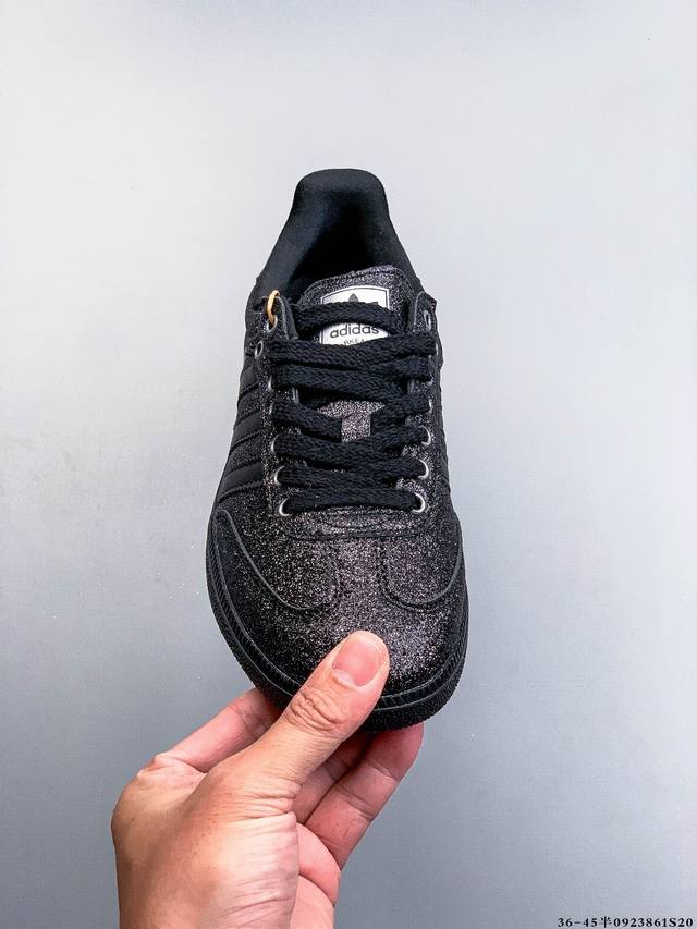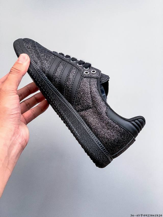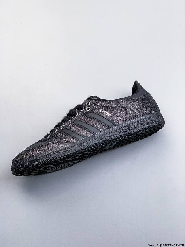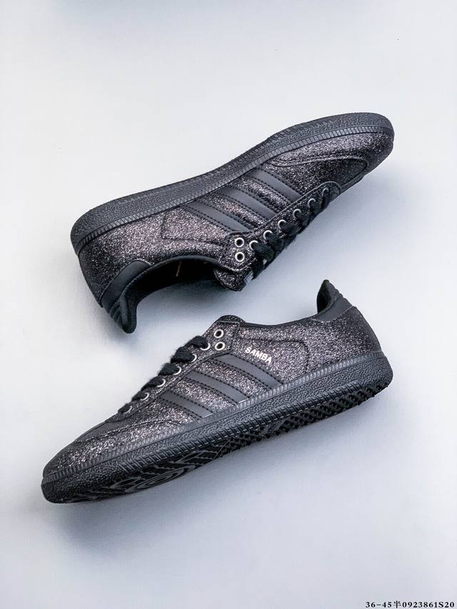 Adidas' nearly 70-year-old classic Samba Og. The slender shoe last, slightly pointed toe cap, and suede toe cap stitching are all elements that we can see, which are the design soul of Samba