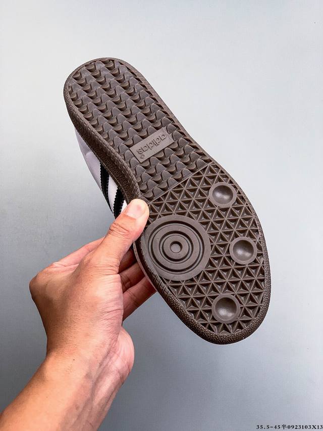 Adidas' nearly 70-year-old classic Samba Og. The slender shoe last, slightly pointed toe cap, and suede toe cap stitching are all elements that we can see, which are the design soul of Samba
