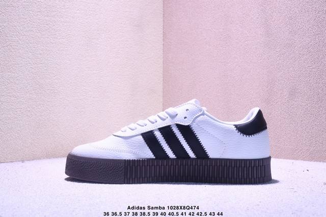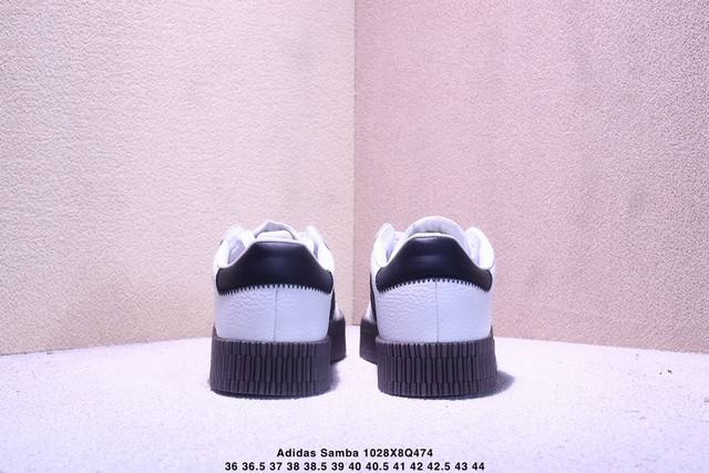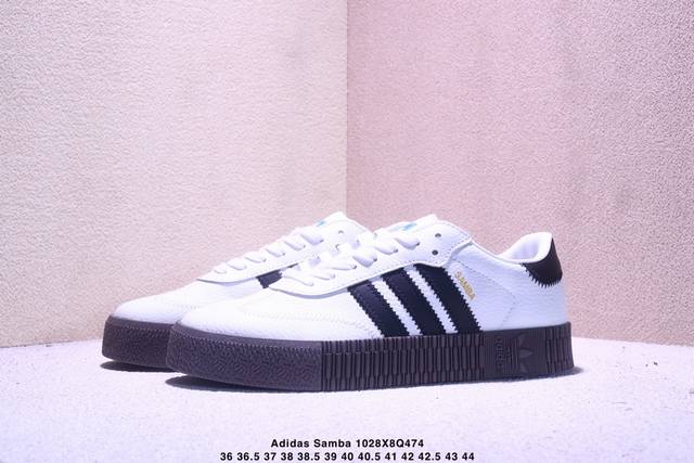 Adidas Originals Samba Rose W Women's Low-Top Platform Sneakers, Yang Mi's Valentine's Day Limited Edition. The sole is made of transparent gum rubber, and the upper is crafted from leather for a comfortable and refined feel. It features a stylish platform design with a 3cm thick gum rubber outsole, and is decorated with the trefoil logo and tread pattern details on the side.