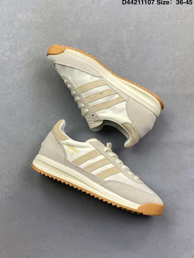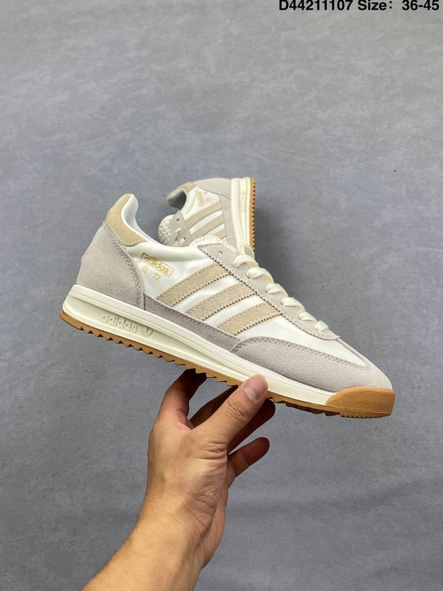 Adidas SL 72 Shoes Classic Retro Thin-Soled Sneakers T-Toe Shoes Adidas Retro Casual Running Shoes Casual Sneakers This classic sneaker brings a retro style to your energetic everyday look. It features a soft leather upper, suede trim, and leather details. An Ecotex tongue adds a touch of sophistication; paired with an EVA midsole for comfortable wear. Featuring a classic low-top design and a rubber outsole, it's designed for a stylish look. Regular fit, lace-up design, nylon, suede, and leather upper, Ecotex textured tongue, vinyl acetate EVA midsole, fabric lining, rubber outsole. Product Code: Jq8376 Size: As shown D4 4211107