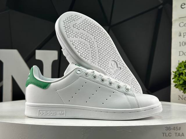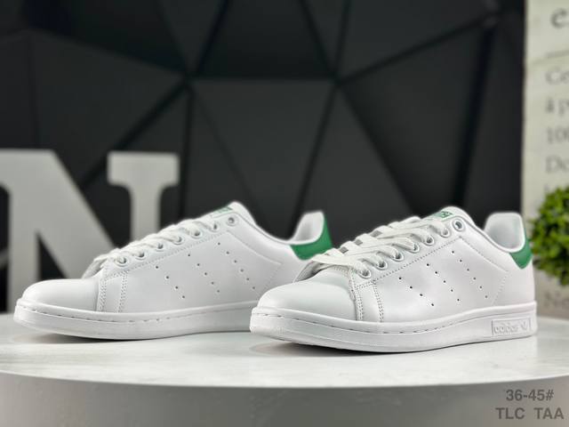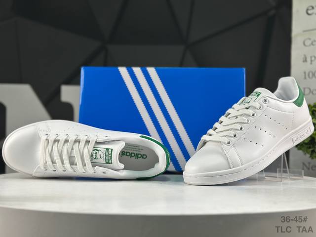 Adidas Stan Smith Classic Sneakers, original top-grain leather with clearly visible pores, eliminating the risk of split leather, cracking, or glue separation. Correct shoe shape, side arch, genuine label, original box, original sole, original upper. Sold by Xiaohongshu reseller, authentic, highest quality version on the market, company grade, perfect genuine style, original label, half sizes, Chinese box label, synchronized with the original version in stores. Item No.: M20323. Sizes: 36 36.5 37 38 38.5 39 40 40.5 41 42 42.5 43 44 45. Tlc Taa.