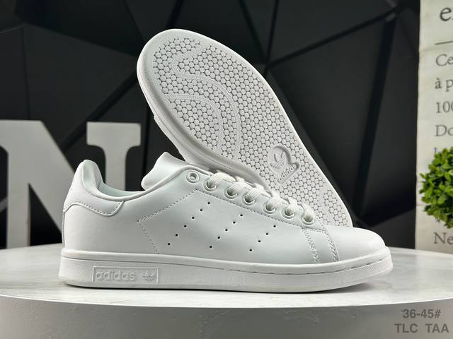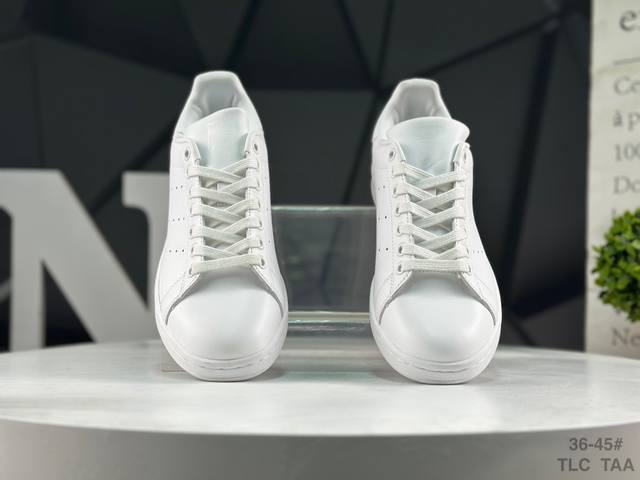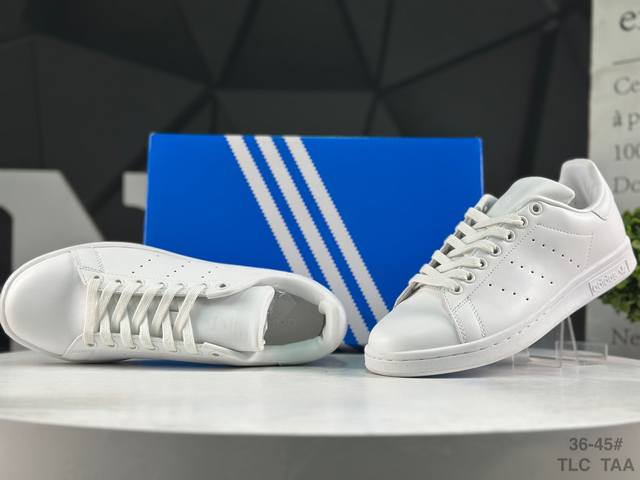Adidas Stan Smith Classic Sneakers, original top-grain leather with clearly visible pores, eliminating the risk of split leather, cracking, or glue separation. Correct shoe shape, side arch, genuine label, original box, original sole, original upper. Sold by Xiaohongshu reseller, authentic, highest quality version on the market, company grade, perfect genuine style, original label, half sizes, Chinese box label, synchronized with the original version in stores. Item No.: S75104. Sizes: 36 36.5 37 38 38.5 39 40 40.5 41 42 42.5 43 44 45. Tlc Taa.
