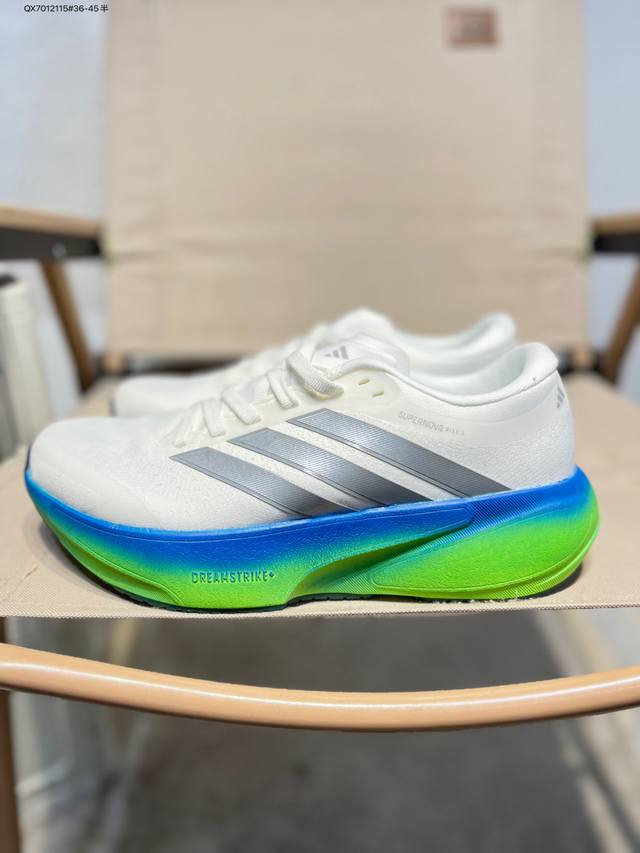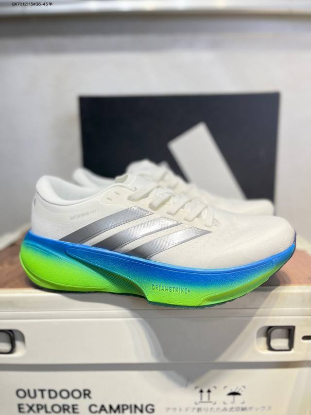 Adidas Supernova Rise 3 Shoes - Slip-resistant, durable, and comfortable running shoes. Midsole technology: Utilizes Dreamstrike+ supercritical foam material reconstructed from Peba base material, combining cushioning and rebound. Support system: Density gradient support bar design optimizes gait transition stability. Waterproof version: GTX model features a Gore-Tex invisible waterproof membrane, suitable for rainy conditions. Last design: Standard width last with comfortable heel lockdown; some users have reported that the lacing system of the regular version needs improvement in terms of fit. Suitable scenarios: Optimal cushioning for 5-minute pace jogging; forefoot slippage occurs below 4.5-minute pace. Durability: Continental rubber outsole demonstrates good durability in multi-terrain testing. Product code: Jr7372 Qx7012115#36-45 half DDD