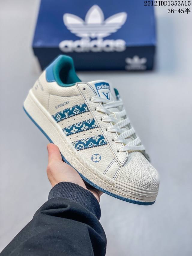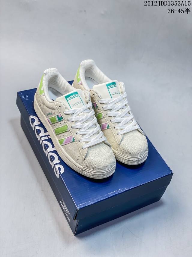 Adidas Superstar "Stusti Collaboration - Green Gold Red" High-end Custom Low-top Casual Sneakers, Custom Shoebox, Factory Original Quality, High Cleanliness, Clean Leather Cutting with No Rough Edges, Perfect Details. Item No.: Ds0027 Sizes: 36-45 (Half Size) 12Jdd1353A15