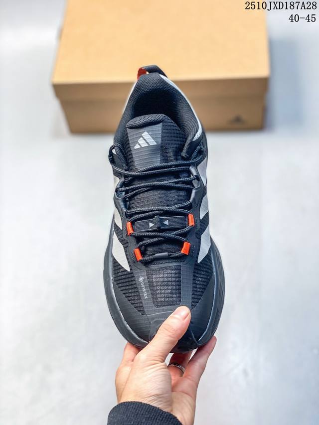 Adidas Terrex, the new Gore-Tex low-top hiking shoe, a chunky, platform sneaker. This series combines Adidas's athletic technology with the functional needs of extreme environments, emphasizing lightweight, slip resistance, water resistance, and durability. (