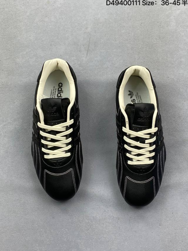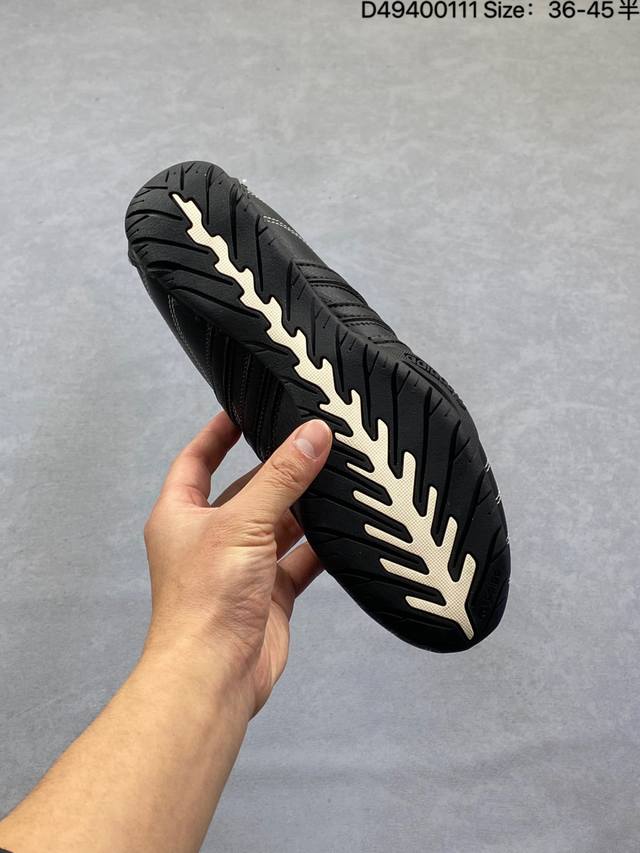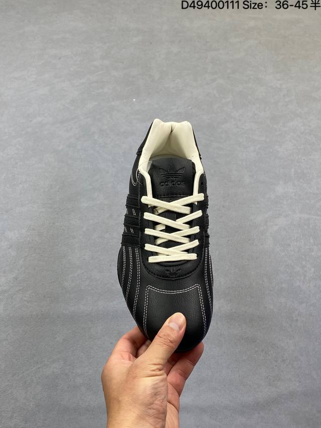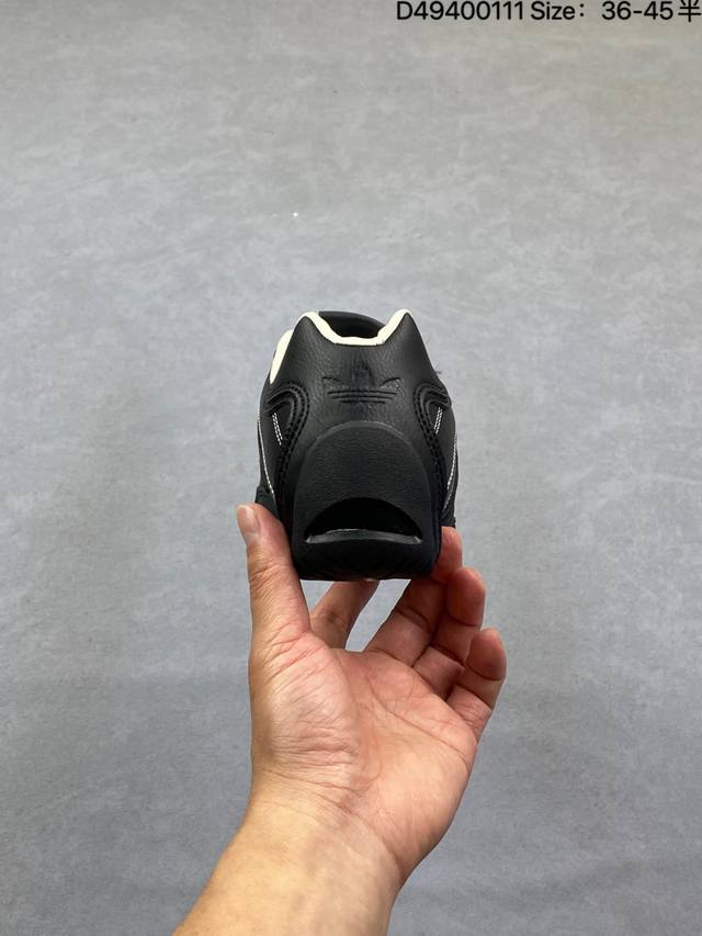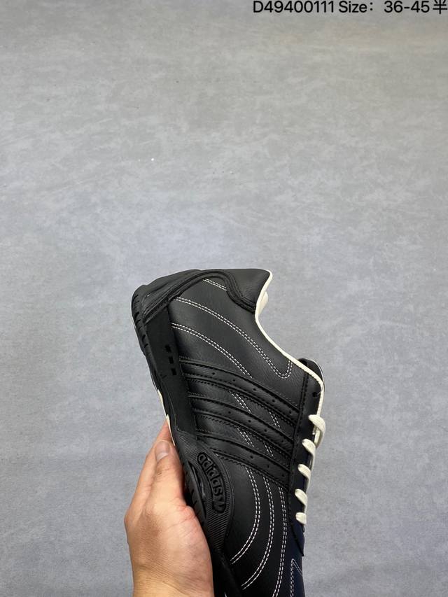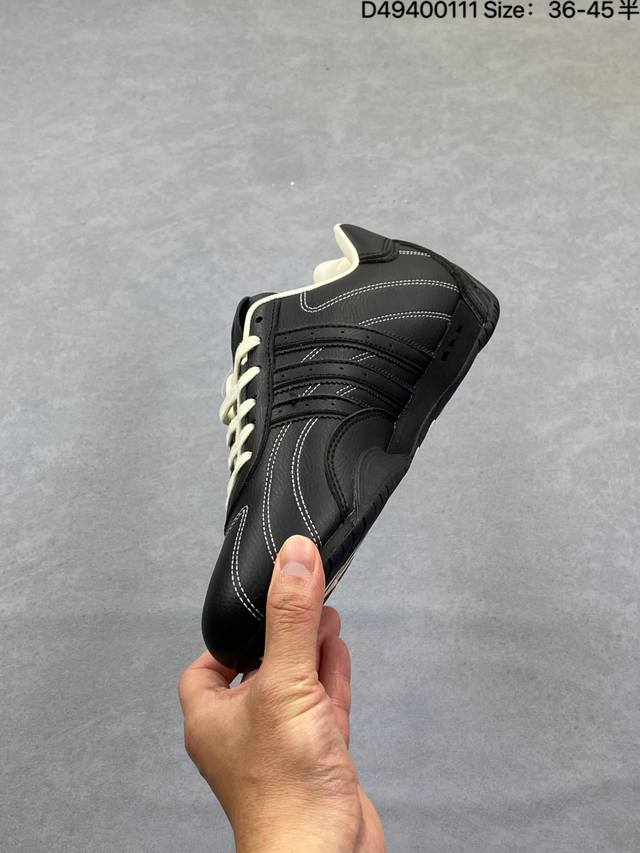 Adidas T-Toe Shoe Series Bad Bunny X Adidas Gazelle Indoor German Training Shoes - Trendy Sports Sneakers. Bad Bunny and Adidas have collaborated again to release the new Gazelleindoor shoe. This shoe features a unique design with a tilted toe and deconstructed style, crafted from premium materials. The shoe is wider and thicker, suitable for those with wider feet, and the thicker insole enhances comfort. The most eye-catching feature is the tilted toe design, a bold alteration to the upper construction, consistent with the original dissolving shoe design. Stitching on the tongue and an exposed heel tab inject deconstructed design elements, enhancing the shoe's style and recognizability. The upper is made of premium white leather mixed with beige suede, while high-gloss black leather accents the side stripes and tongue. It features thick, rope-like laces and a semi-transparent gum rubber outsole, achieving a perfectly balanced premium feel. Item No.: Js5053 Code: D49400111