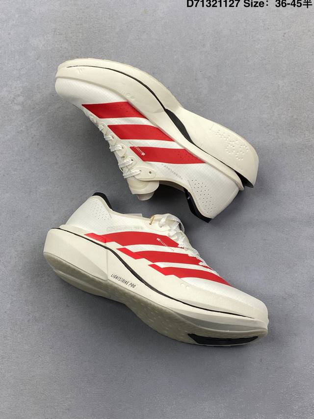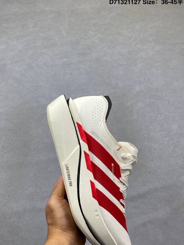 Adidas upgraded the original last and paper version, using a lightweight one-way elastic woven upper material, with Lightstrike high-density foam in the midsole and a single Lightstrike Pro cushioning technology in the forefoot, and a Continental rubber anti-slip outsole. The new minimalist design language is featured in the Adidas Adizero Adios pro Evo 5 Beige Khaki Black series low-top lightweight breathable racing casual sports running shoes K18293 DDD. Type: Men's and women's shoes DDD. Size: As shown DDD D71321127 DDD
