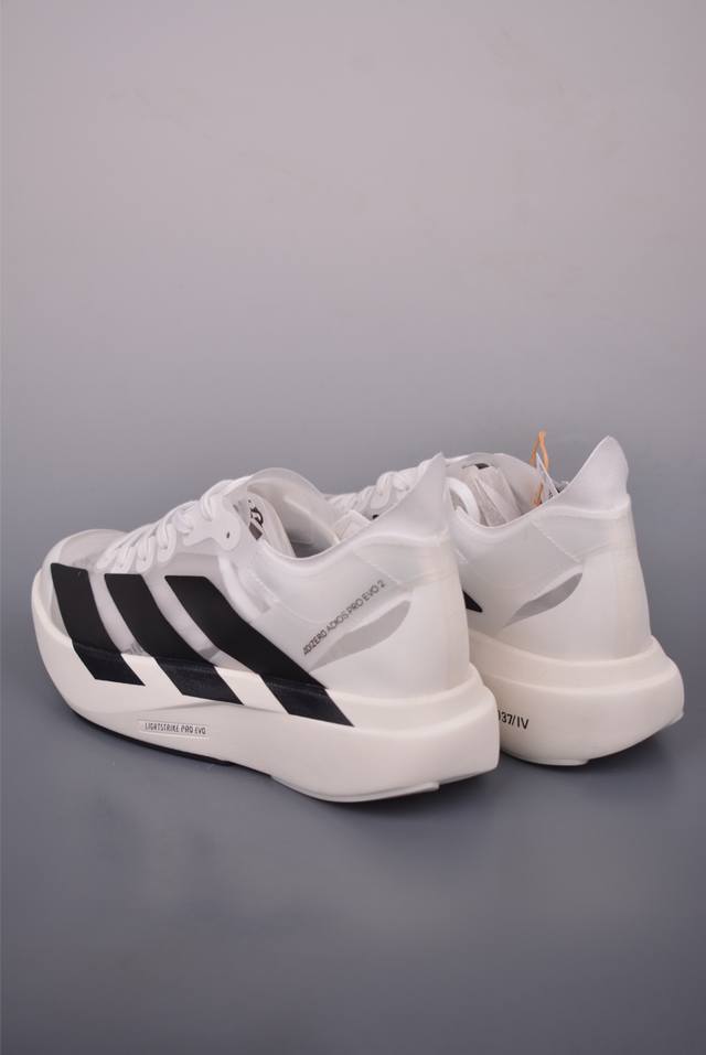 The overall appearance is very similar to the Adizero Adios pro Evo 1. The midsole configuration is equipped with a full-length Lightstrike pro