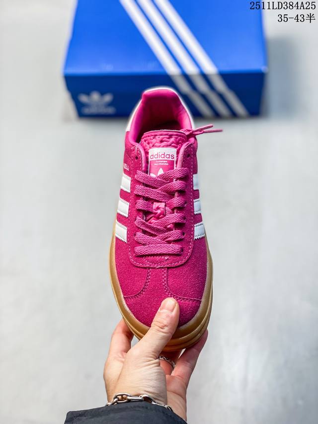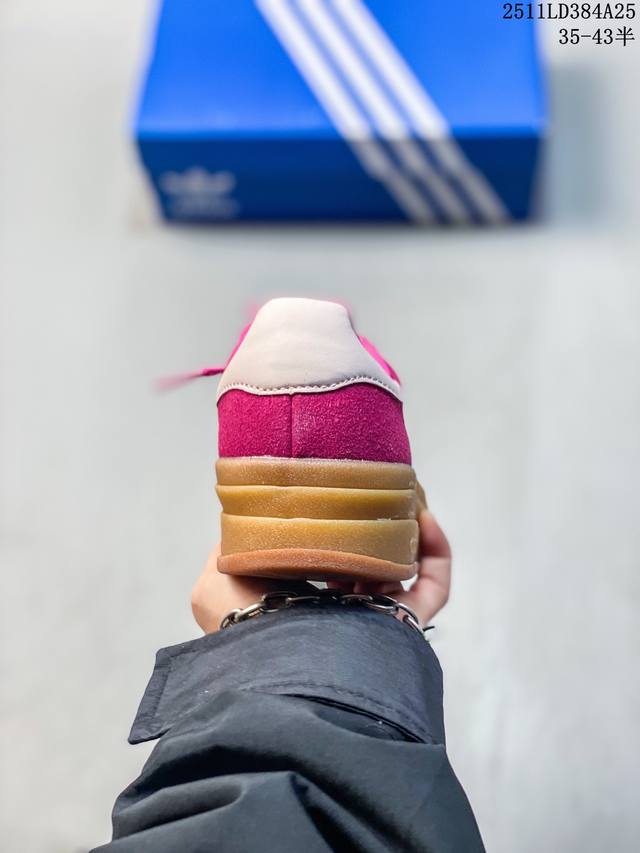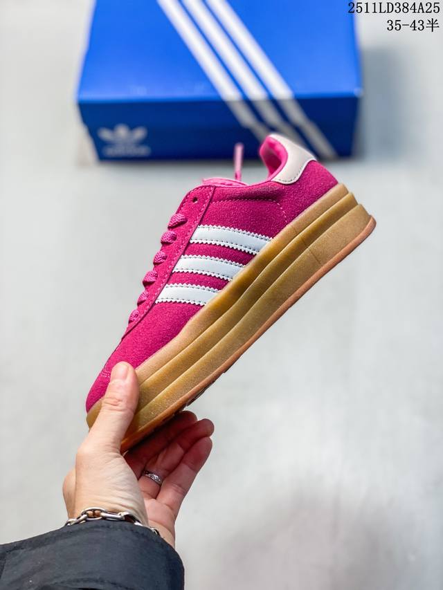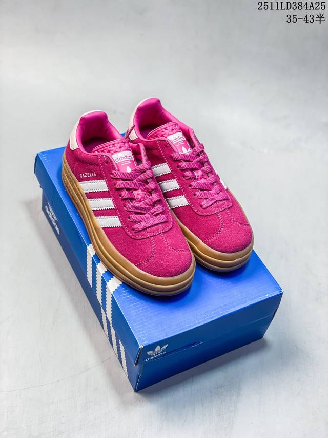 Authentic Adidas 2025 New Year Shoes, Trefoil Gazelle Bold Retro Style Thick-Soled Sneakers. Adidas's evergreen popular Gazelle features a three-layer thick sole design. The stacked design is not only ingenious but also creates a more distinct sense of layering. The thick sole adds at least 3 centimeters to your leg length, no exaggeration. The upper is made entirely of suede leather, exuding a low-key luxurious retro trend. The color scheme is classic and easy to match, ensuring it won't go out of style even after five years. It's versatile enough to change your style every day. Product Code: Jq0955 Sizes: 35-43 (including half sizes) 11Ld384A25