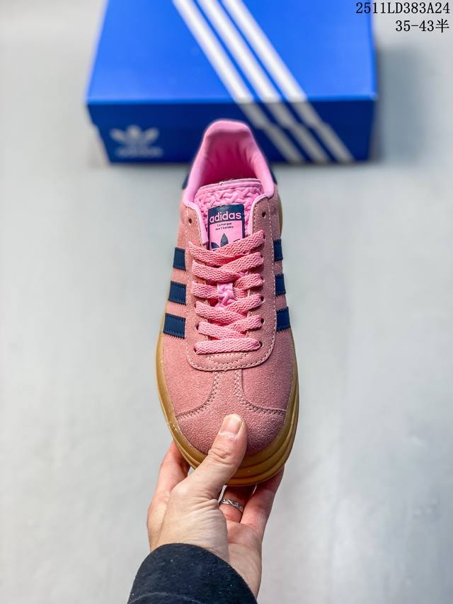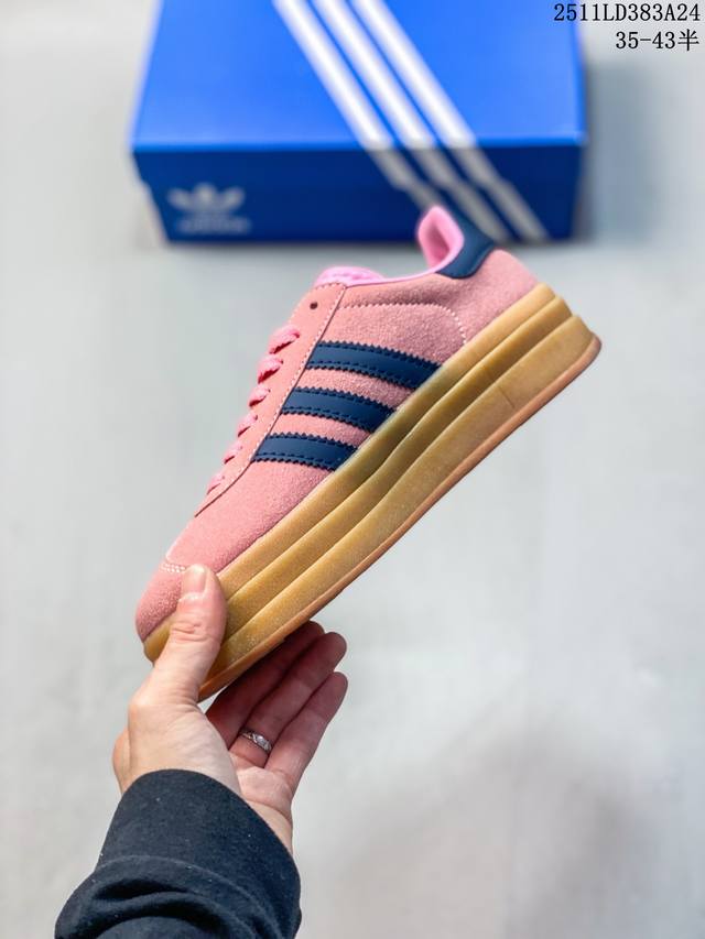 Authentic Adidas 2025 New Year Shoes, Trefoil Gazelle Bold Retro Style Thick-Soled Sneakers. Adidas's evergreen popular Gazelle features a three-layer thick sole design. The stacked design is not only ingenious but also creates a more distinct sense of layering. The thick sole adds at least 3 centimeters to your leg length, no exaggeration. The upper is made entirely of suede leather, exuding a low-key luxurious retro trend. The color scheme is classic and easy to match, ensuring it won't go out of style even after five years. It's versatile enough to change your look every day. Product Code: Jq0955 Sizes: 35-43 (including half sizes) 11Ld393A24