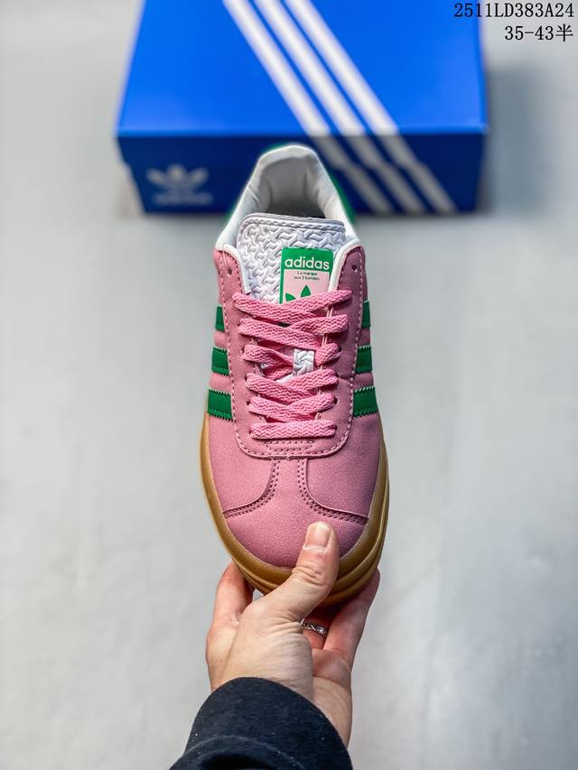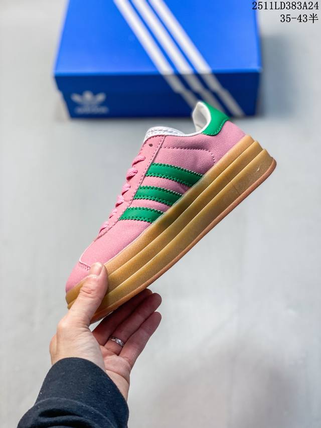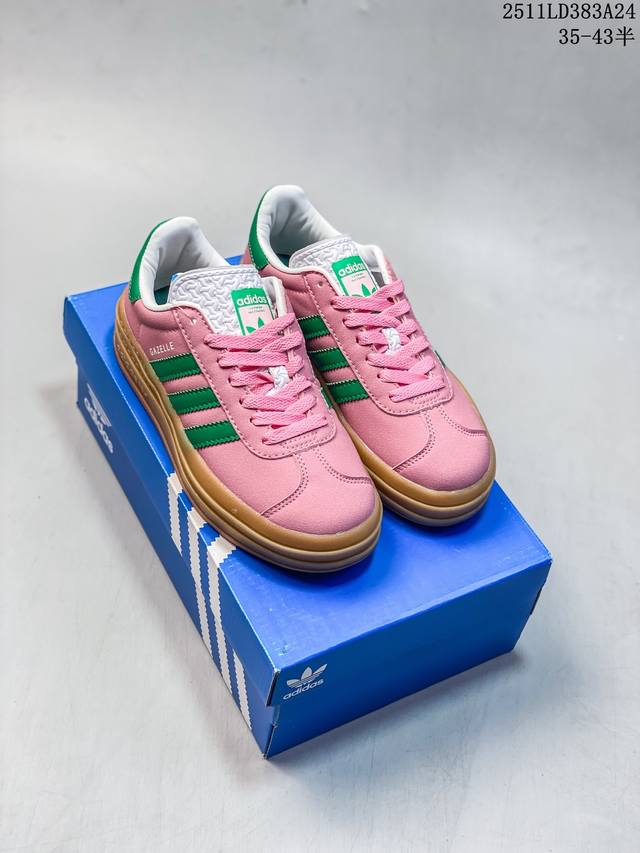 Authentic Adidas 2025 New Year Shoes, Trefoil Gazelle Bold Retro Style Thick-Soled Sneakers. Adidas's evergreen popular Gazelle features a three-layer thick sole design. The stacked design is not only ingenious but also creates a more distinct sense of layering. The thick sole adds at least 3 centimeters to your leg length, no exaggeration. The upper is made entirely of suede leather, exuding a low-key luxurious retro trend. The color scheme is classic and easy to match, ensuring it won't go out of style even after five years. It's versatile enough to change your look every day. Product Code: Jq0955 Sizes: 35-43 (including half sizes) 11Ld393A24