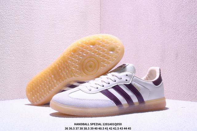 Authentic label with half sizes: Adidas Handball Spezial Trefoil retro casual sneakers, German training shoes, rubber sole, soft leather, classic athletic shoes. Product code: If6561. Sizes: 36, 36.5, 37, 38, 38.5, 39, 40, 40.5, 41, 42, 42.5, 43, 44, 45. Xm1201Q050