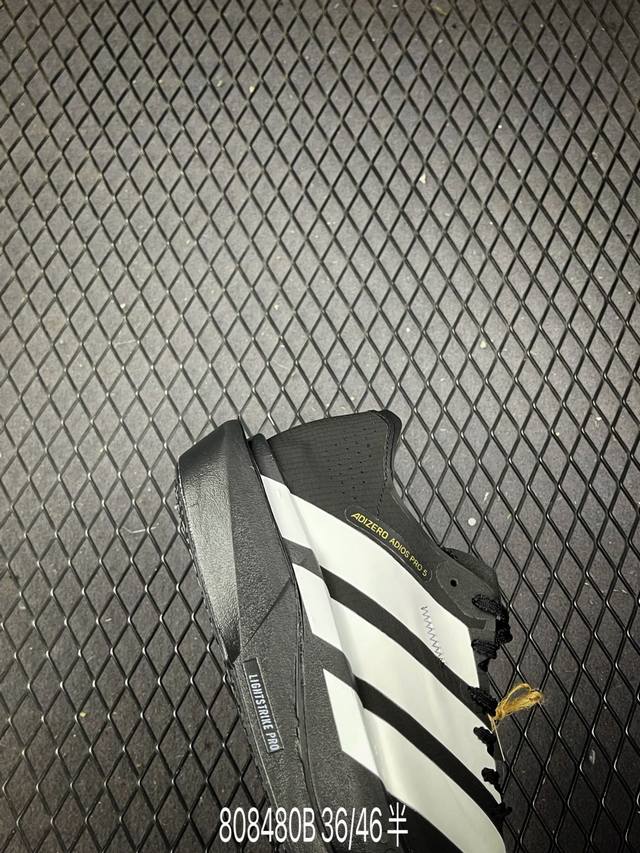 B DDD Adidas Adizero Adios 5 M DDD Adidas ultralight breathable cushioning running shoes with a full-length carbon fiber plate DDD The overall appearance is very similar to the Adizero Adios pro Evo 1. The midsole features a full-length Lightstrike Pro DDD The upper uses breathable mesh, fitting the positioning of an everyday training shoe for increased durability DDD The outsole uses Continental rubber and the previous generation racing flagship Adidas Adizero Adios pro 3's regional distribution DDD Official product code: K18296 DDD Sizes: 36 36.5 37.5 38 38.5 39 40 40.5 41 42 42.5 43 44 44.5 45 DDD Code: 808480B DDD