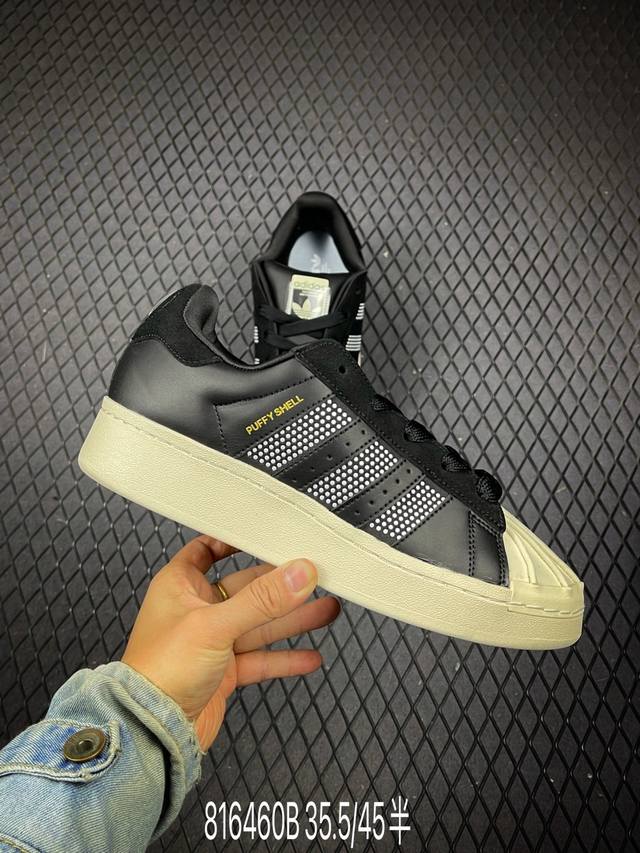 B DDD Adidas Originals Superstar Puffy Shell new colorway with double tongue DDD Shell toe casual sneakers. Exclusive control platform for genuine products. 100% authentic. All shoes are made with computer-stitched materials. Logo stitching spacing and stitch count are consistent with the original. Leather cutting and punching are flawless. Glue content is consistent with the original. Outsole. Original box. Chinese inner and outer labels. High probability of passing authentication. We only compare with the original shoes, not other shoes on the market. We only serve the highest-end market. DDD Product number: Kj6976 DDD Sizes: 35 36 36.5 37 38 38.5 39 40 40.5 41 42 42.5 43 44 45 DDD Note: Tongue can be removed. Deduct 20 if lost. DDD Code: 816460B DDD