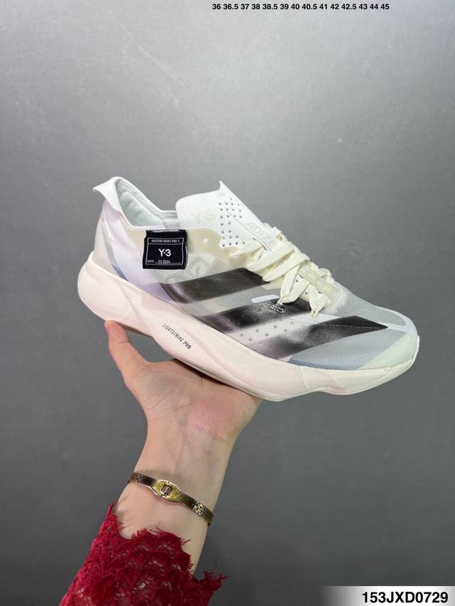 Company Grade Adidas Adizero Adios Pro 3 Marathon Flywire Jacquard Lightweight Breathable Casual Sports Running Shoes DDD Features a double-layer breathable mesh upper with Flywire dynamic cable lacing and built-in Zoom Air unit DDD Product Code: Gx6251 DDD Sizes: 36 36.5 37 38 38.5 39 40 40.5 41 42 42.5 43 44 45 DDD ID: 153Jxd0729 DDD