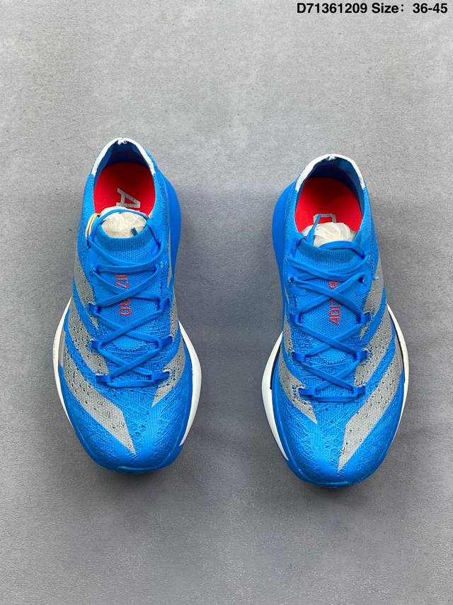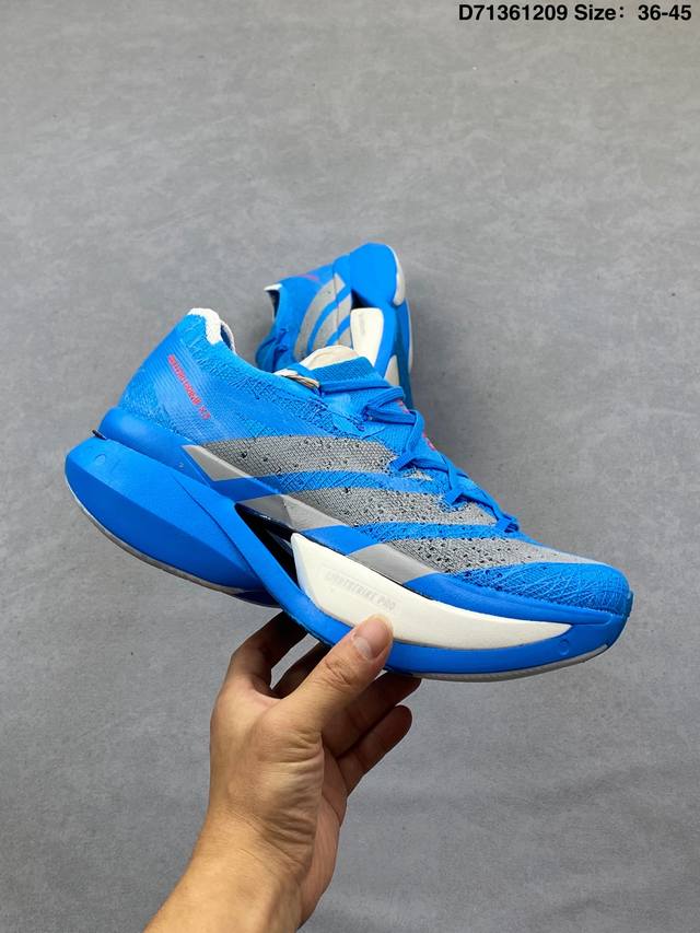 Company Grade Adidas Adizero Prime X 3.0 Strung Hakone Series Professional Training Carbon Plate and Carbon Pillar Adidas Classic Marathon Running Shoes. The overall design language of its predecessor is adopted, with upgrades to the details, designed for the ultimate performance in marathons and long-distance road running. Product Code: Jq0615. Sizes: 36, 36.5, 37, 38, 38.5, 39, 40, 40.5, 41, 42, 42.5, 43, 44, 45. ID: D71361209.