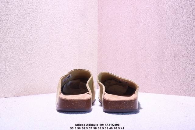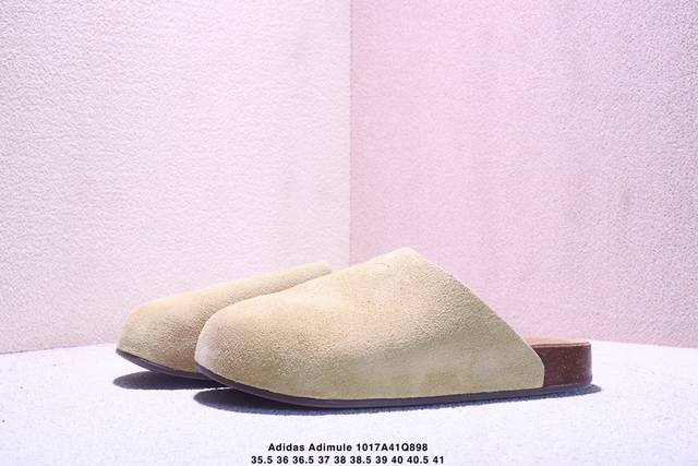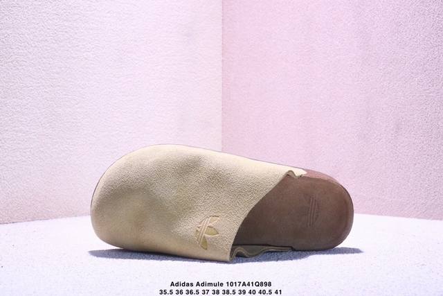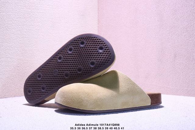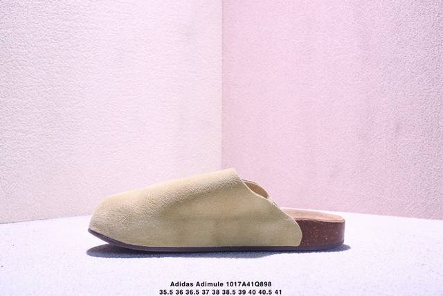 Company Grade Adidas Originals Adimule, a versatile and comfortable rubber-soled, abrasion-resistant closed-toe slipper. Features a soft cowhide suede upper, a wavy-shaped cushioning cork rubber midsole, and is available in sizes Js0705, 35.5, 36, 36.5, 37, 38, 38.5, 39, 40, 40.5, and 41. (Xm1017Q898)