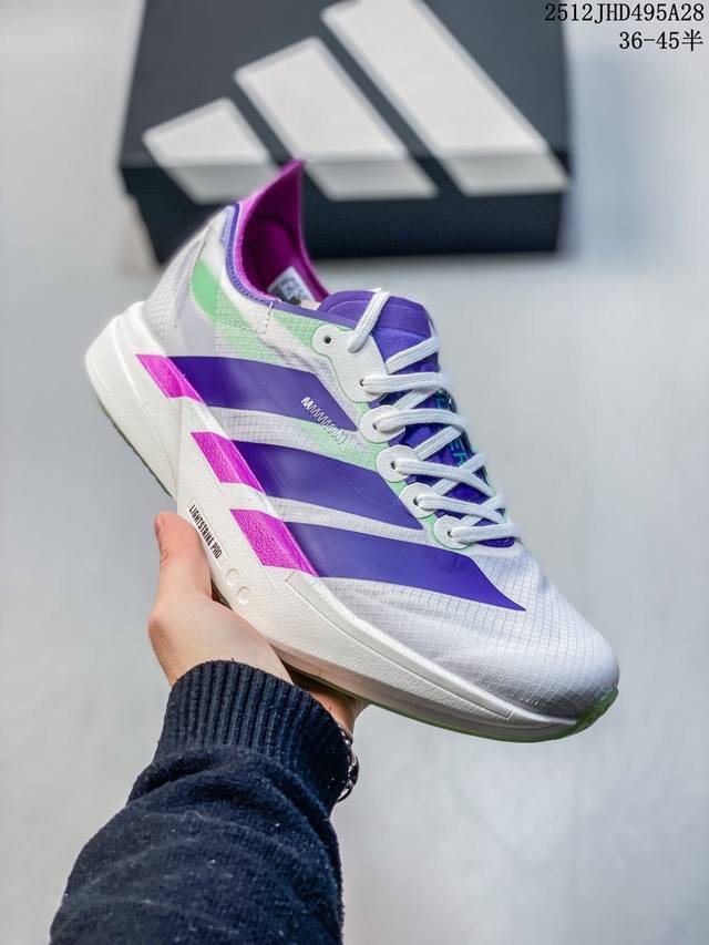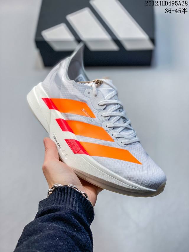 Company-grade Adidas Adizero Adios Pro 4 Comfortable, Slip-resistant, Durable, Low-top Casual Running Shoes for Men and Women, Thick Height-Increasing Dad Shoes. In 2025, Adidas launched the Adidas Adizero Adios Pro 4 running shoe. This shoe features a soft, bouncy midsole and outsole, providing a stable running experience. The upper is made of lightweight materials with good breathability, while also offering excellent grip and durability. The soft, bouncy sole enhances the impact feel, while the elastic midsole makes running more comfortable. The shoe offers high stability and is suitable for various running styles. However, due to the soft, bouncy sole, runners with longer strides may experience some instability. Overall, the Adidas Pro 4 is a reliable racing shoe suitable for daily training and track running. Product Code: Jr1241 Sizes: 36-45 (including half sizes) Code: Mjti1023Zvl Product Number: 12Jhd495A28