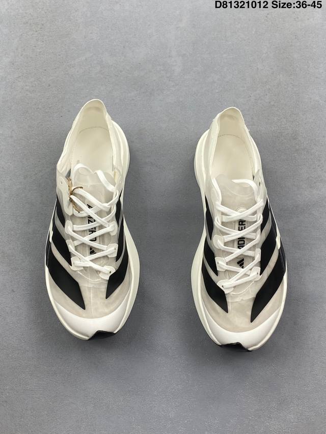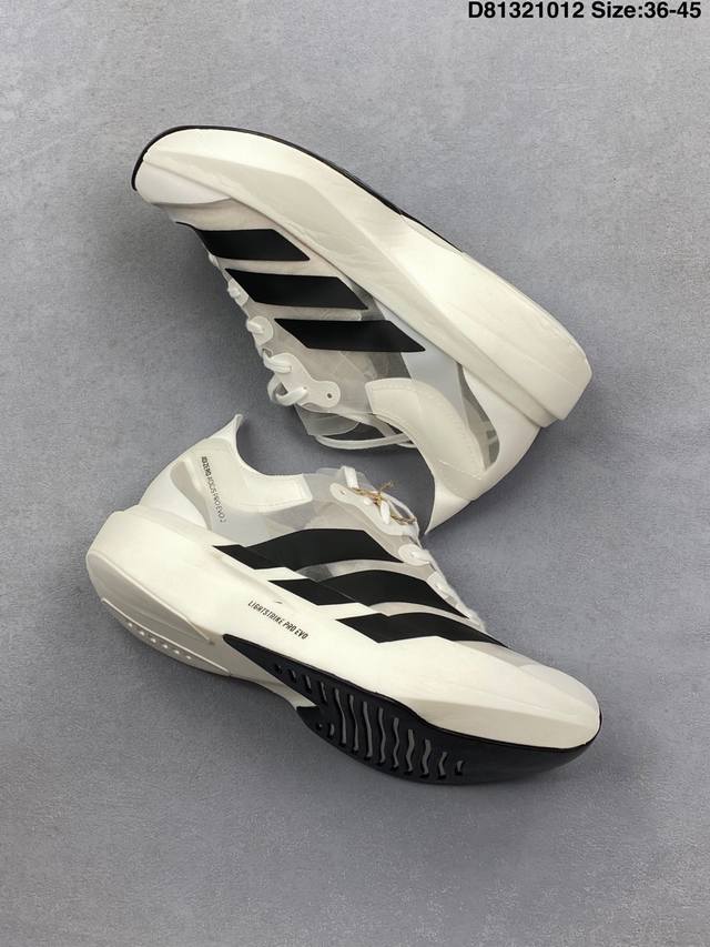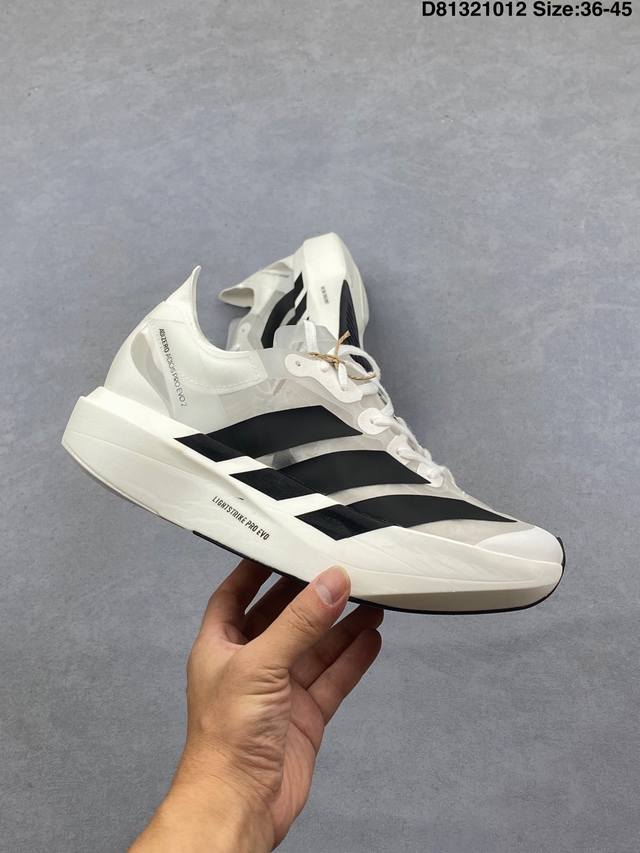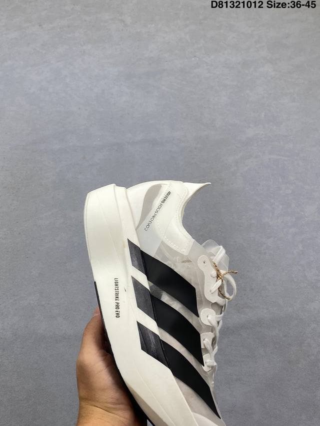 The overall appearance is very similar to the Adizero Adios Pro Evo 1. The midsole features full-length Lightstrike Pro