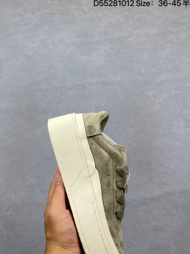 Company-grade Adidas Labcourt versatile casual comfortable wear-resistant breathable low-top platform sneakers for both men and women. The upper is made of suede, and the connection between the upper and sole is finished with binding, making it look more refined and stylish; the lining is also made of smooth premium leather, and the Adidas logo on the insole highlights the brand identity. The English "Endineered For The Style Of Future" on the heel translates to "Designed for the Style of the Future". Type: Men's and Women's Shoes Item Number: Js0557 Sizes: 36-45 (including half sizes) Code: D55281012