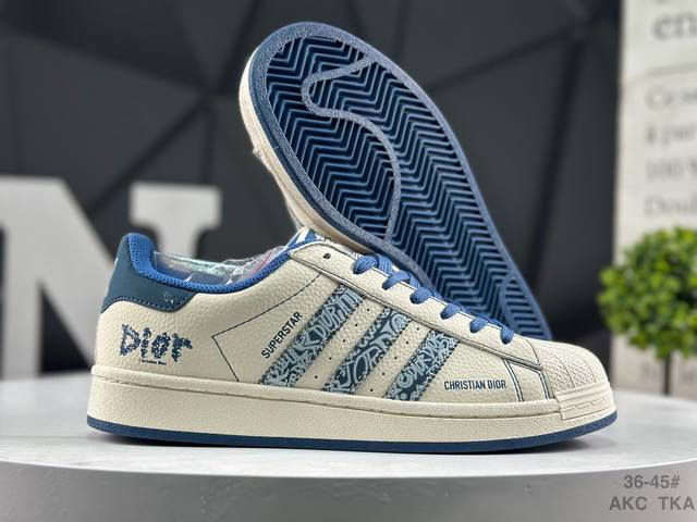 Company-grade Adidas Superstar Casual Sneakers with half sizes. Exclusive controlled stock platform, authentic single product. 100% original materials, full computer stitching, logo stitching spacing and stitch count consistent with the original, leather cutting and punching flawless, consistent with the original, glue content, outsole, original box, Chinese inner and outer labels. High probability of passing authentication. No comparison with other shoes on the market, only comparison with the original shoes. Serving only the highest-end market. Item No.: Ds5808. Sizes: 36 36.5 37 38 38.5 39 40 40.5 41 42 42.5 43 44 45 AKc Tka