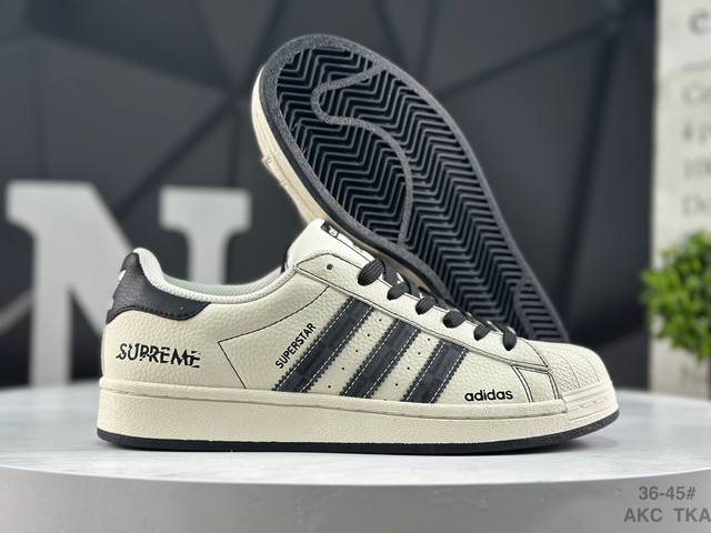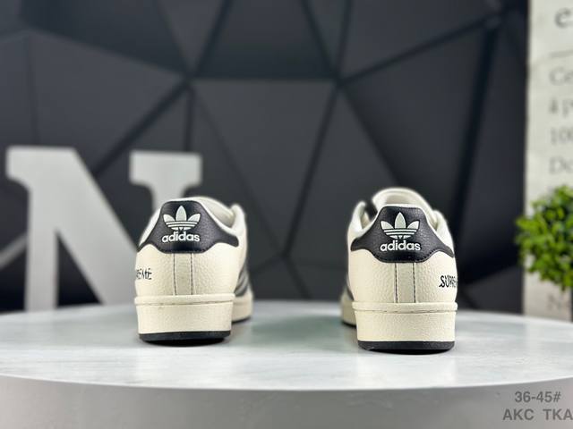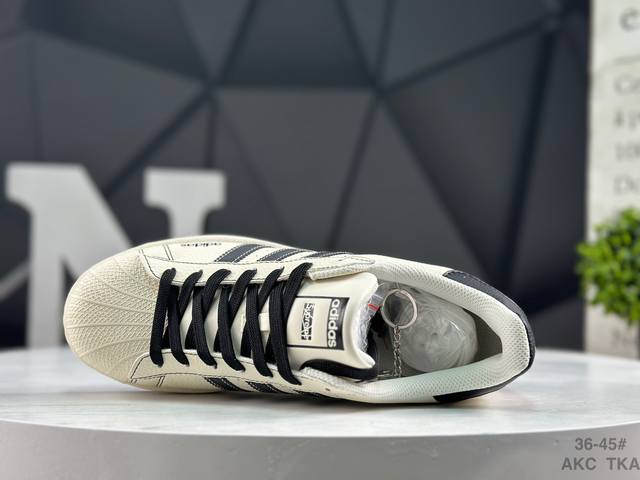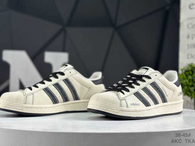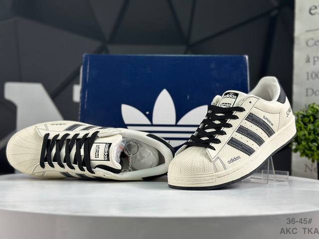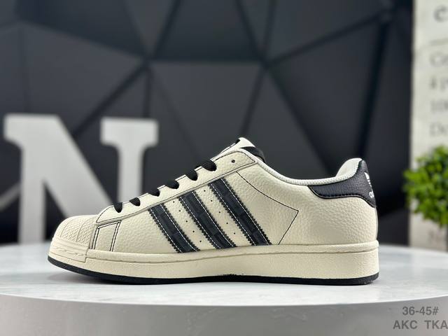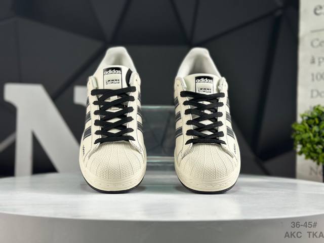 Company-grade Adidas Superstar Casual Sneakers with Half Sizes. Exclusive controlled stock platform, authentic single product. 100% genuine raw materials. Fully computer-stitched. Logo stitching spacing and stitch count are consistent with the original. Leather cutting and punching are flawless. Consistent with the original shoe. Glue content, outsole, original box, Chinese inner and outer labels. High probability of passing authentication. We only compare with the original shoes, not other shoes on the market. Serving only the highest-end market. Item No.: Ds5809. Sizes: 36, 36.5, 37, 38, 38.5, 39, 40, 40.5, 41, 42, 42.5, 43, 44, 45. AKC, TKA,