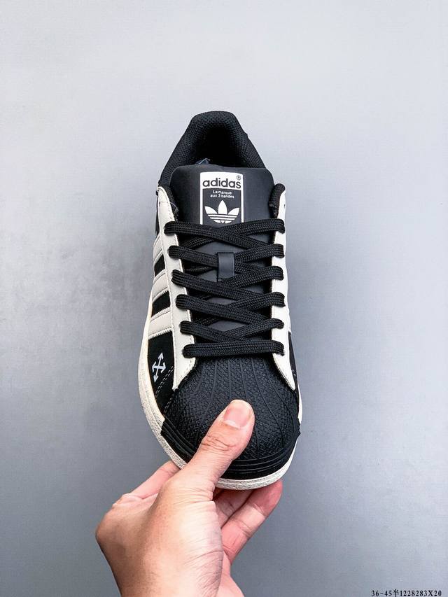Company-grade top-grain leather! Adidas Superstar Shell Toe Classic Versatile Casual Sneakers. Authentic order from authorized channels, showcasing the highest level of craftsmanship in the market. Classic white shell toe sneakers with matching colorways to those in boutiques. Made entirely of imported top-grain leather. Distinguished from ordinary authentic versions on the market, these shoes are indistinguishable from genuine boutique shoes. 1228283X20
