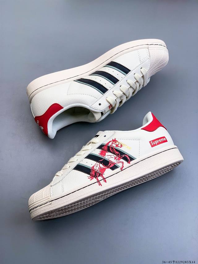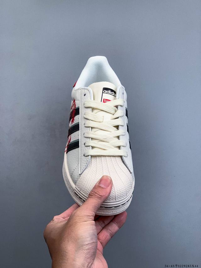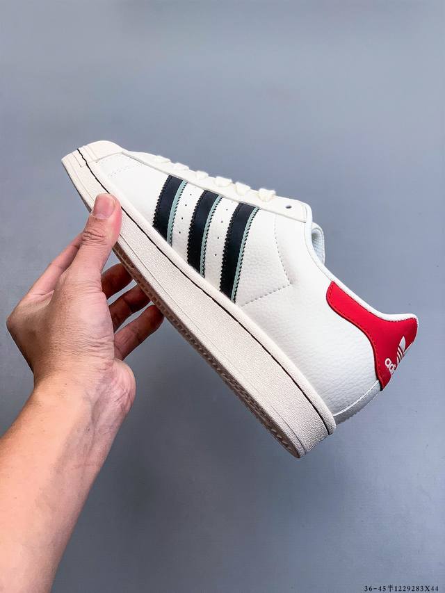 Company-grade top-grain leather! Adidas Superstar Shell Toe Classic Versatile Casual Sneakers. Authentic order from authorized channels, showcasing the highest level of craftsmanship in the market. Classic white shell toe sneakers with matching colorways to those in boutiques. Made entirely of imported top-grain leather. Distinguished from ordinary authentic versions on the market, these shoes are indistinguishable from genuine boutique shoes. 1229283X44