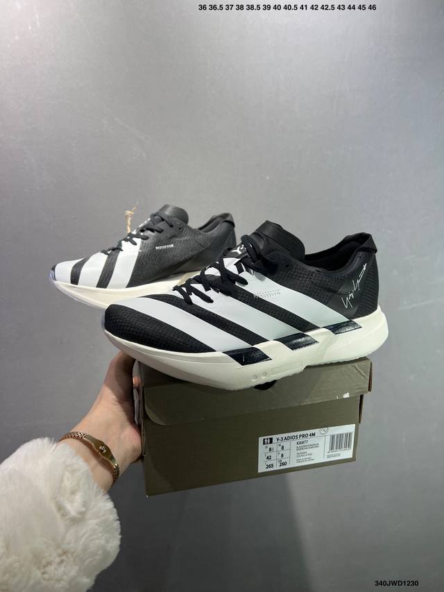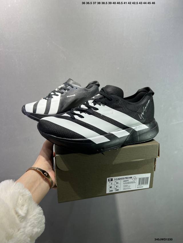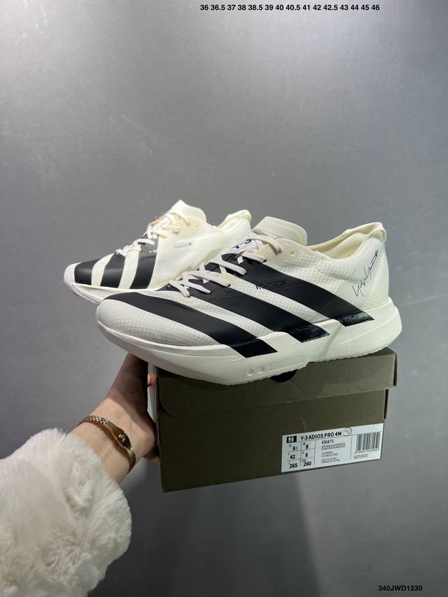 Company-grade Y-3 Adidas Adizero pro Evo 4 M collaboration model. The overall design is very similar to the Adizero Adios pro Evo 1. The midsole features full-length Lightstrike Pro. The upper is made of breathable mesh, suitable for everyday training and more durable. The outsole uses Continental rubber and the previous generation racing flagship Adidas Adizero Adios pro 3. Official product code: Jr66562332. Sizes: 36, 36.5, 37.5, 38, 38.5, 39, 40, 40.5, 41, 42, 42.5, 43, 44, 44.5, 45. ID: 340Jwd1230.