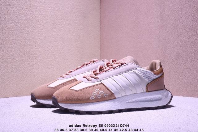 Company-level! The Adidas Originals Retropy E5 Popcorn Speed Lightweight Retro Series versatile breathable casual sports jogging shoes. New Boost lightweight cushioning sole material# Lightweight yet dynamic
