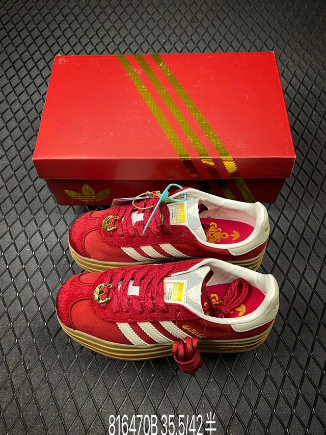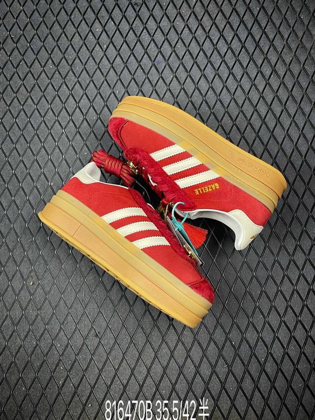 DDD Company Grade Adidas Originals Gazelle Bold Cny Year of the Horse Limited Edition High-Hot New Fashionable Versatile Non-Slip Wear-Resistant Low-Top Adidas Platform Sneakers DDD The main color is red, with a deep red suede toe. The overall upper is accented with horsehair, making it the most eye-catching feature. The iconic three stripes are crafted from leather, and the heel features the iconic lettering. The contrasting colors create a strong New Year's atmosphere. DDD Product Code: Kj4293 DDD Sizes: 35.5 36 36.5 37 38 38.5 39 40 40.5 41 42 Code: 816470B DDD