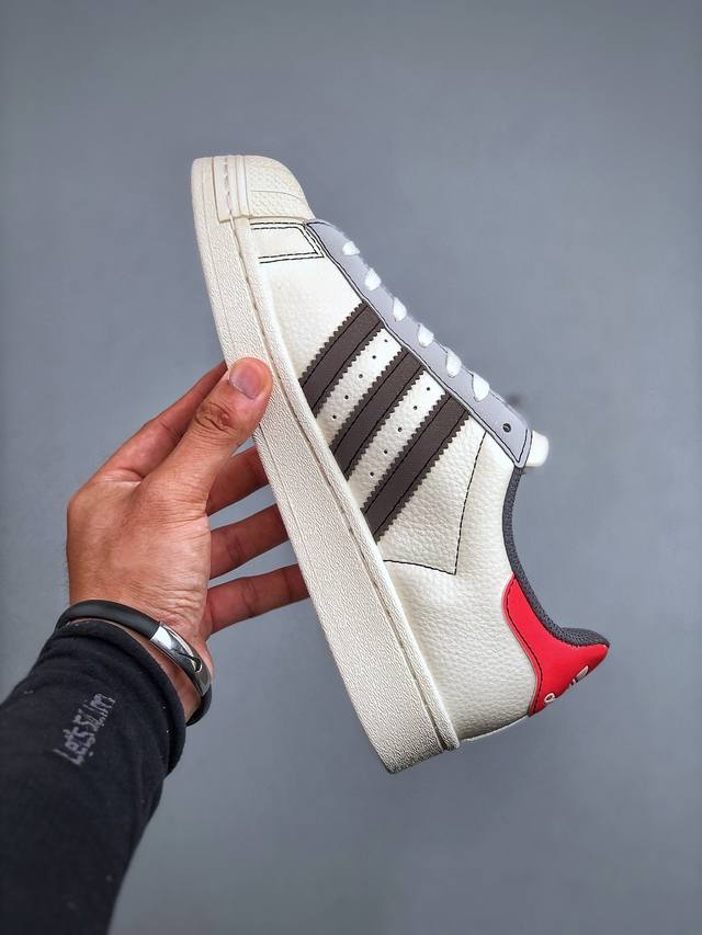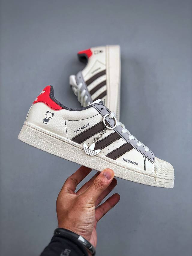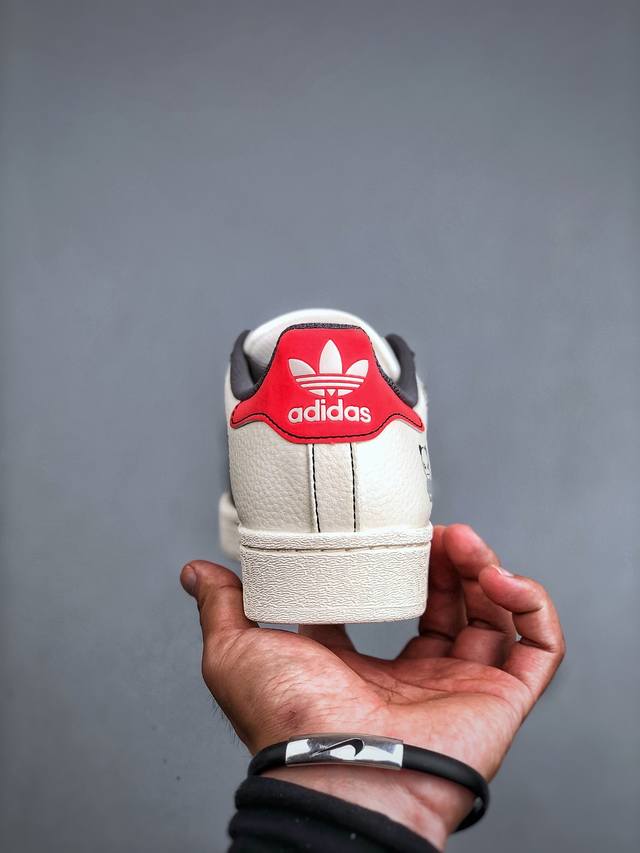 Fedition, a popular overseas model, is now available in limited quantities! High-end custom Adidas Superstar "Violent Bear Collaboration - White, Gray, and Red Tail" features a classic shell-toe silhouette, playfully accented with panda elements. The red, gray, and white color scheme creates an eye-catching sparkle. The iconic three stripes and Adidas Trefoil are detailed, and exquisite charms add a touch of fun. High-end custom low-top casual sneakers are available in a custom shoe box. Genuine quality shipped from a leading manufacturer, with exceptional cleanliness. The leather is cleanly cut, free of burrs, and the details are impeccable. Item number: Qf5801. Sizes: 36-45 (half