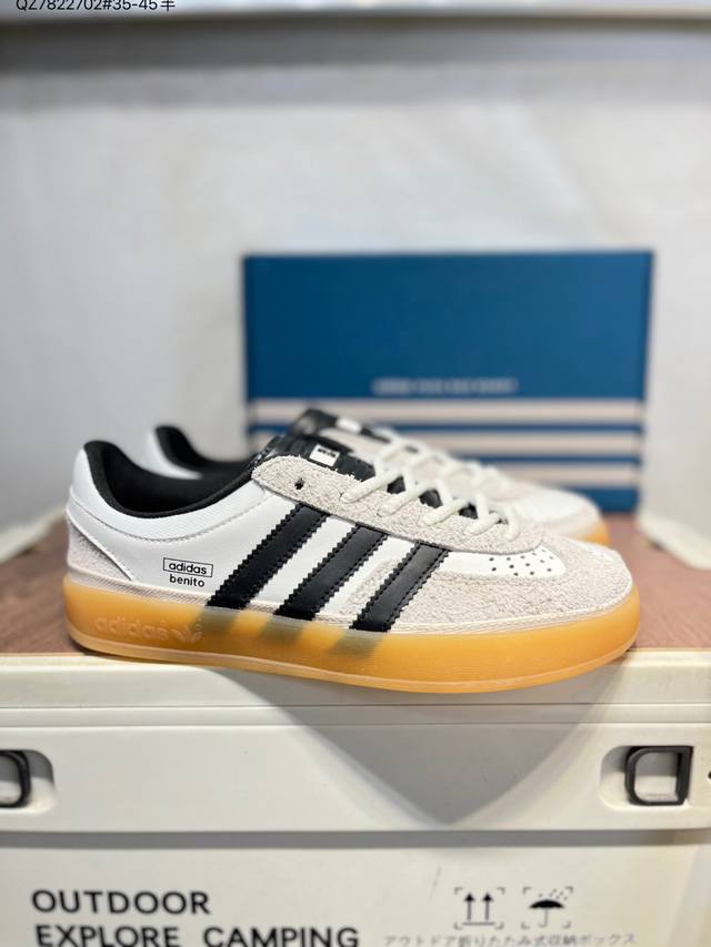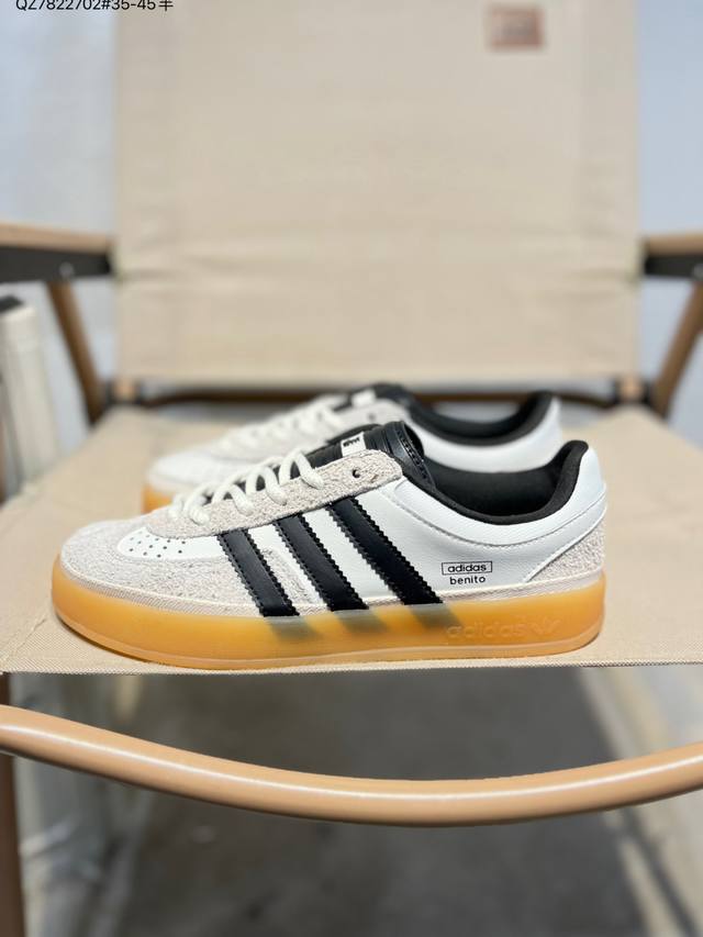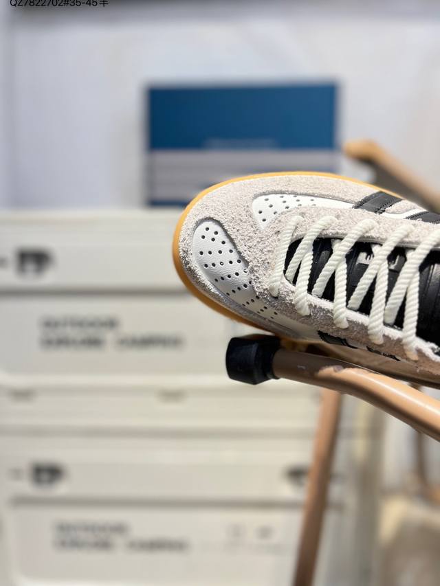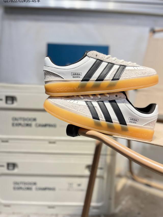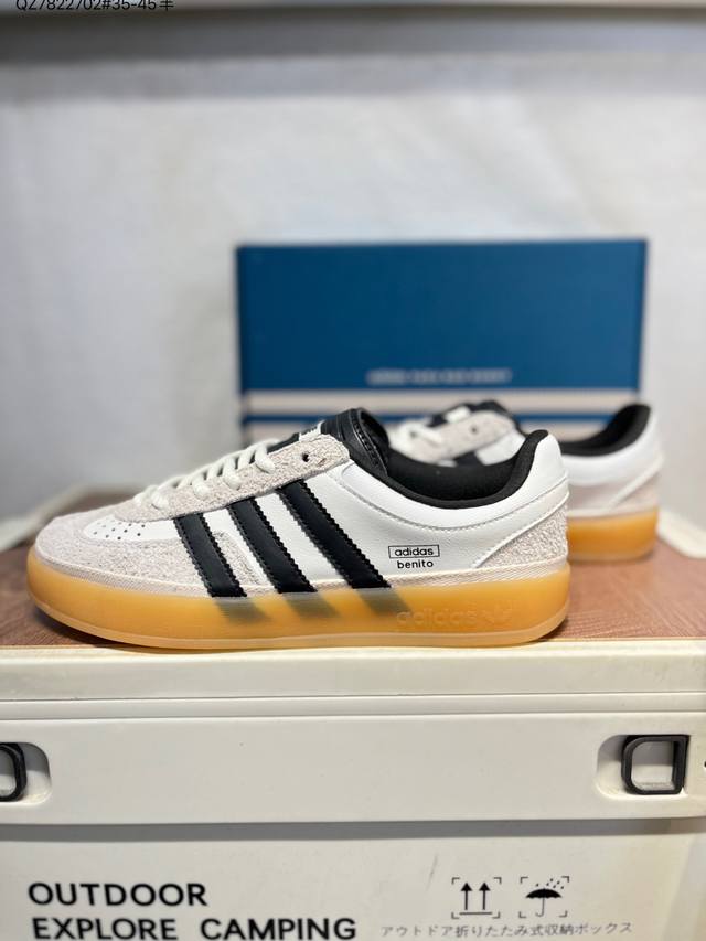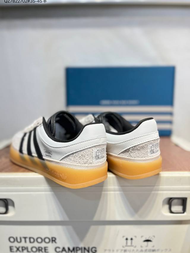 Features a combination of long-pile suede and nubuck leather upper. #Inner eco-friendly sea glass insole #Outer RB rubber outsole. The unique design of this new collaboration between Latin American rapper Bad Bunny and Adidas Gazelle Indoor Trainers Benito is a low-top retro-style casual sports shoe in a German training aesthetic. "Collaboration white, black, and light gray deformed toe" If9735 Qz7822702 #35-45 half-DDD