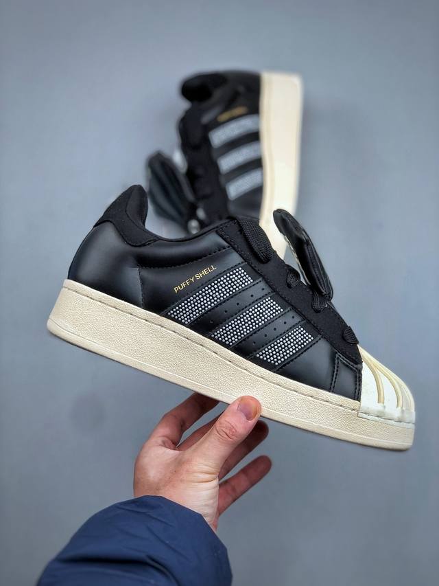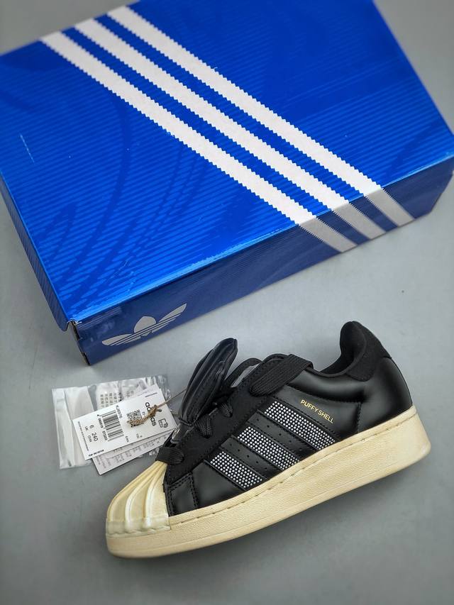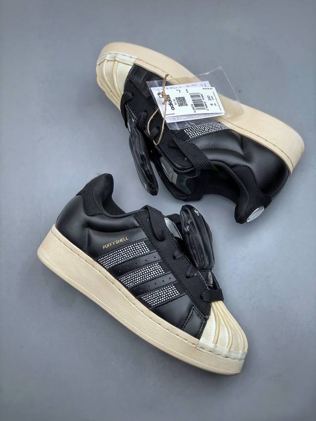 KJ version Adidas Originals Superstar Puffy Shell new colorway, double tongue, Ddd shell toe casual sneakers. Exclusive controlled stock platform, authentic single item, 100% raw materials, full shoe computer stitching, logo stitching spacing and stitch count consistent with the original, leather cutting and punching flawless, consistent with the original, glue content, outsole, original box, Chinese inner and outer labels, high probability of passing authentication. We only compare with the original shoes, not other shoes on the market, serving only the highest-end market. Ddd Product Number: Kj6976 Sizes: 35.5-45 (half Ddd)