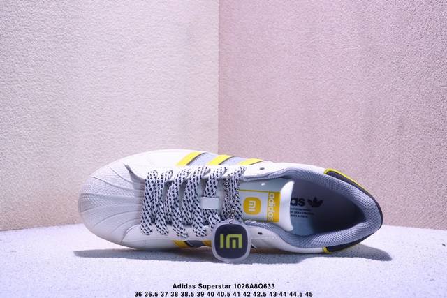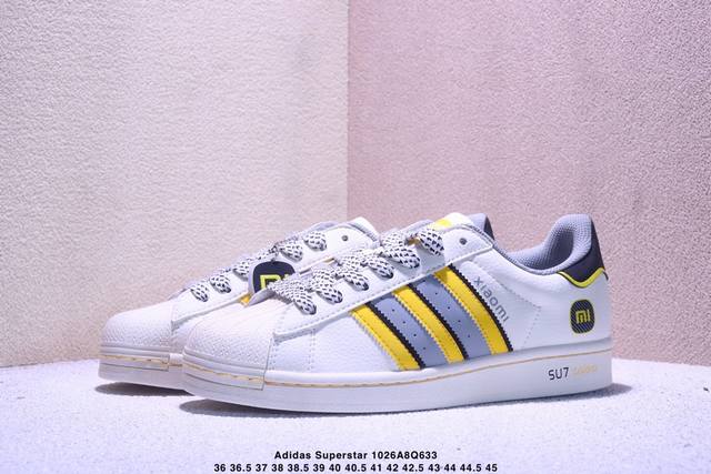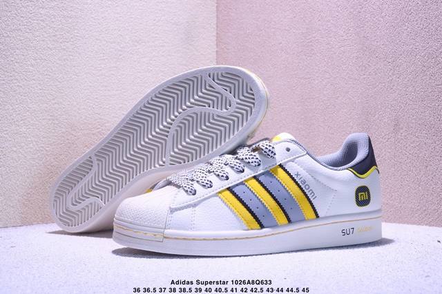 Limited-edition overseas bestseller! High-end custom Adidas Originals Superstar Shell Toe series "Xiaomi Su7 Collaboration" "Su7 White Black Yellow" low-top classic versatile casual sports sneakers. Made with original top-grain materials, the materials are top-notch. Exclusive design and steam distillation process bring a better visual and foot feel experience. Cleanliness, electro-embroidery process, clean leather cutting without any rough edges, perfect details. Item No.: Jy8916 Sizes: 36 36.5 37 38 38.5 39 40 40.5 41 42 42.5 43 44 44.5 45 Xm1026Q633