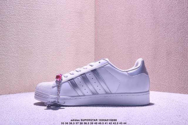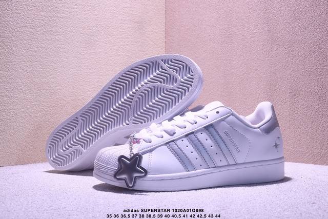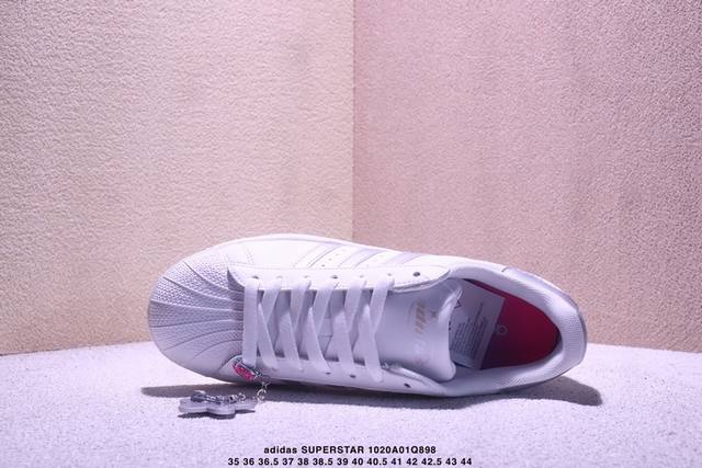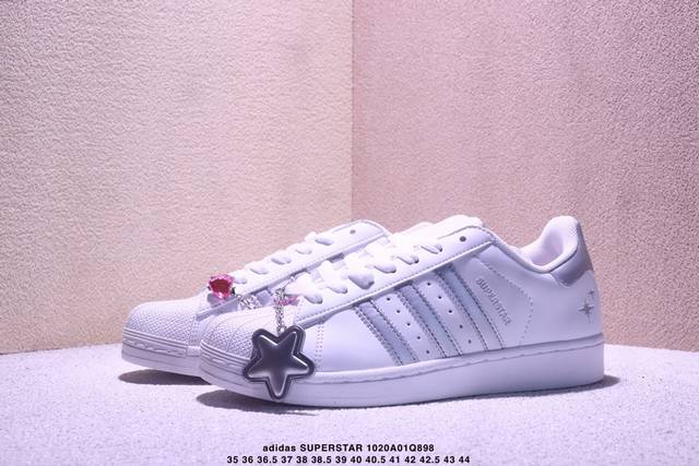 Superstar Collaboration Shell Toe Fashion Retro Durable Lightweight Low-Top Sneakers. Retro Trefoil anti-slip transparent rubber sneakers, classic athletic shoes. Regular cut, lace-up design, leather upper, fabric lining; gum rubber full-coverage outsole for comfortable wear.