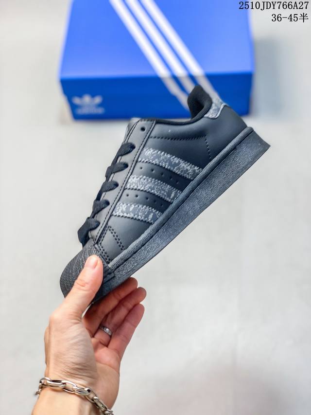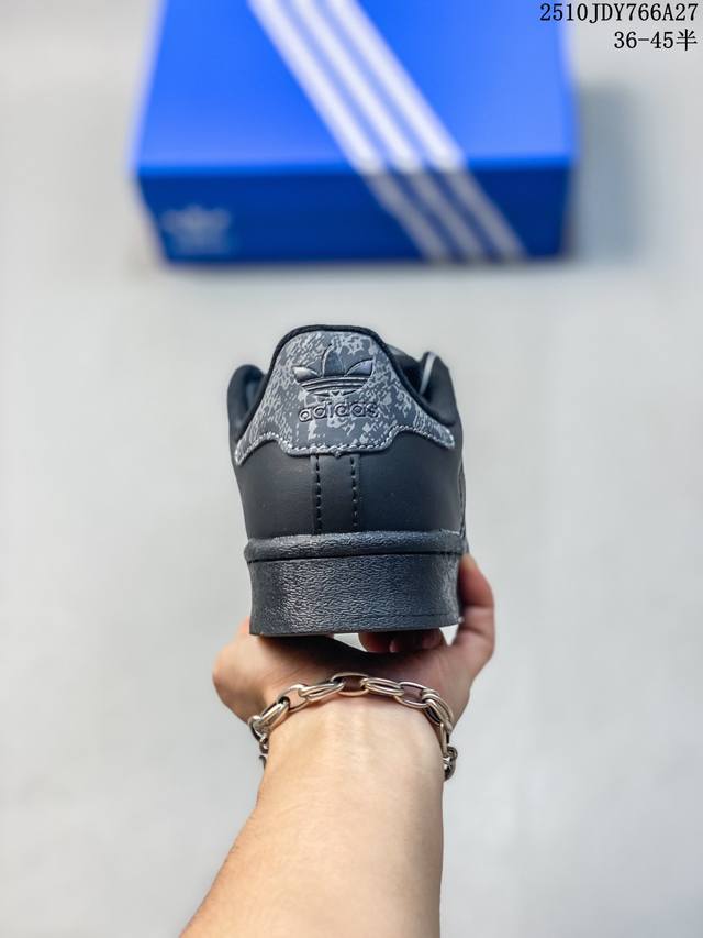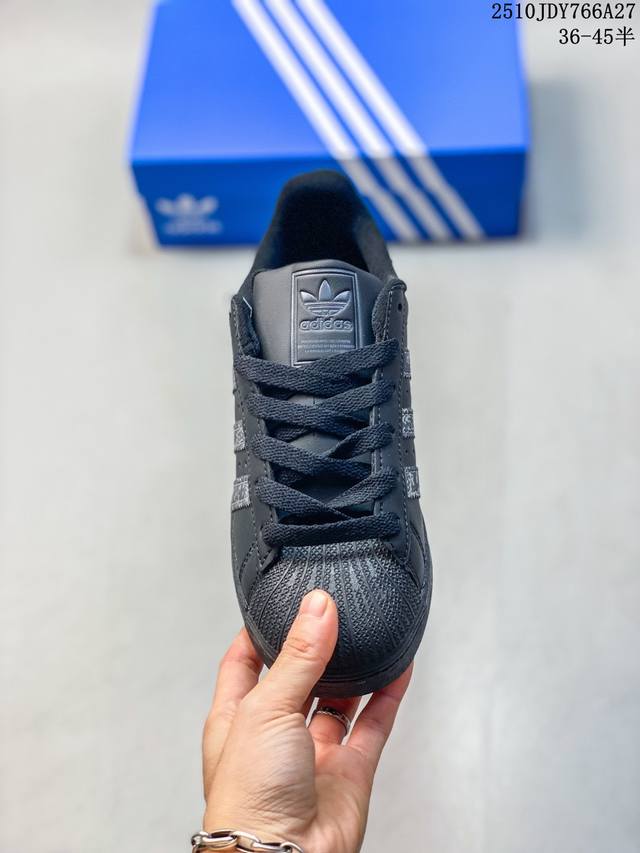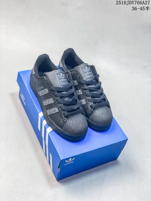 Superstar Collaboration Shell Toe Fashion Retro Durable Lightweight Low-Top Sneakers. Retro Trefoil anti-slip transparent rubber sneakers, classic athletic shoes. Regular cut, lace-up design, leather upper, fabric lining; gum rubber full-coverage outsole for comfortable wear.