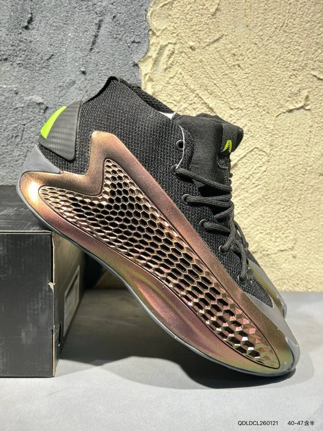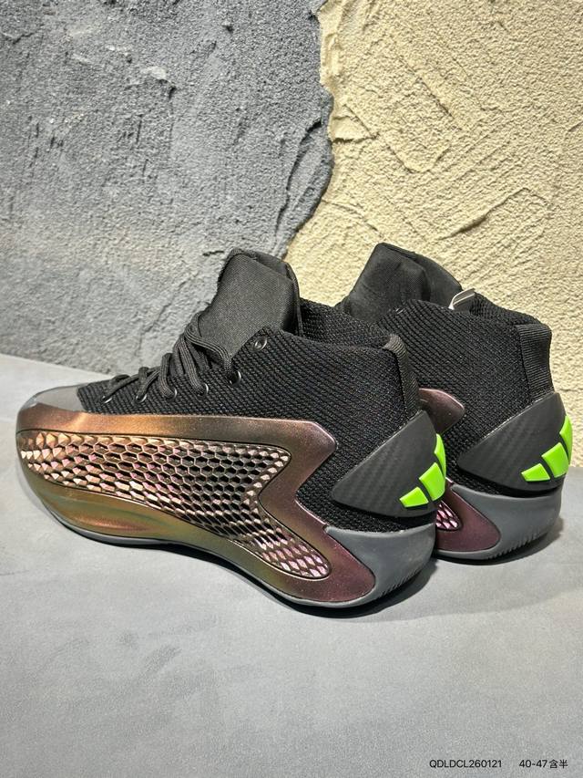 New Product Launch Real Shots DDD #Men's Shoes Authentic Label Half Size System#Original Last and Original Archive Data Developed Pattern#Innovative Support Wing TPU Upper Material#Full-Length TPU Wrapped Jet Boost Midsole#Larger Herringbone Anti-Slip Rubber Outsole Edwards' Personal Signature Shoe! Adidas Ae 1 Stormtrooper Huazi 1 Generation Series Mid-Top Performance Basketball Shoes "Gradient Paint" If1858 DDD Adidas releases Anthony Edwards' first signature shoe, the Ae 1, in a new colorway, "New Wave" deep blue. DDD It is reported that the new colorway "New Wave" deep blue is inspired by Anthony's on-court performance and the main color of his team, the Minnesota Timberwolves. It features a blue upper with a black collar, creating a striking and individual look. The