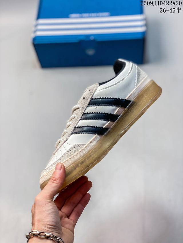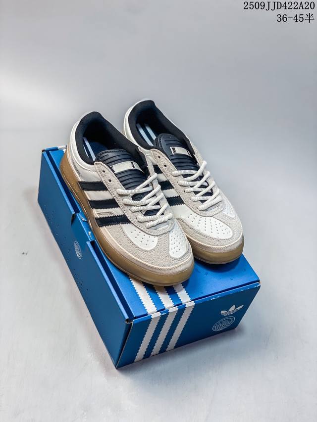Puerto Rican rapper Bad Bunny continues his collaboration with adidas in 2019, with the duo already collaborating on a range of styles. This year, they kicked off with their signature Campus in a "Dark Brown" hue, followed by their successful rendition of the Response Cl, this time in "Wonderwhite." Now, images have emerged, offering our best look yet at the duo's latest venture. This might not be the first time you've heard of Bad Bunny's adidas Gazelle Indoor, as the rapper actually teased the next Colab on the cover of Interview Magazine back in February. The colorway chosen is subtle, featuring a white leather base with black accents and grey suede on the toebox and heel. The silhouette's highlight is the warped toe box, which gives off an asymmetrical feel.